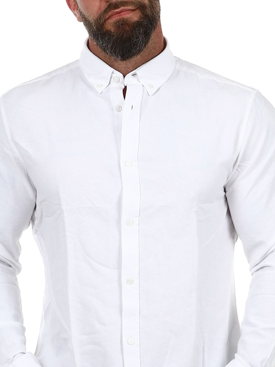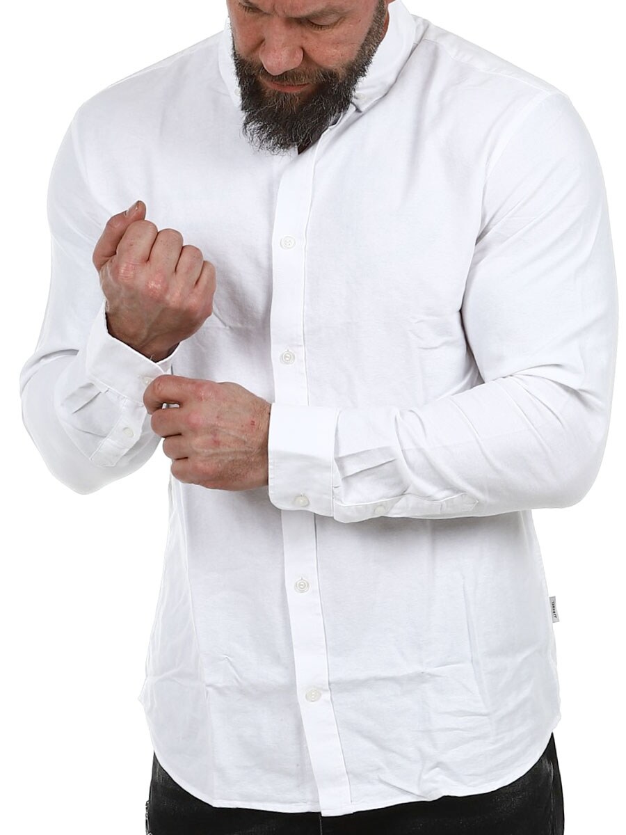 Tämä pitkähihainen regular fit -paita on monipuolinen vaatekappale, joka sopii sekä toimistoon että vapaa-aikaan. Paidan suora malli luo rennon mutta huolitellun siluetin, ja ajaton väri tekee siitä helpon yhdistää niin farkkuihin kuin pukuhousuihin.