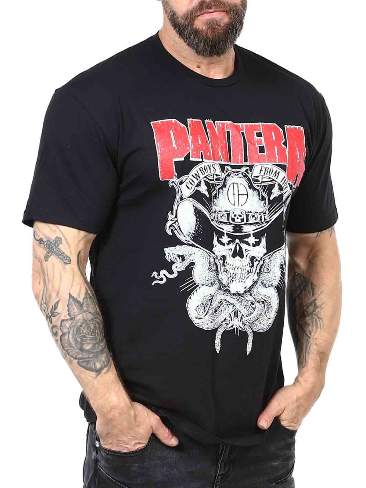 Band Merch Pantera Cowboys From Hell t-paita mustana on pakollinen hankinta legendaarisen metallimusiikin faneille.