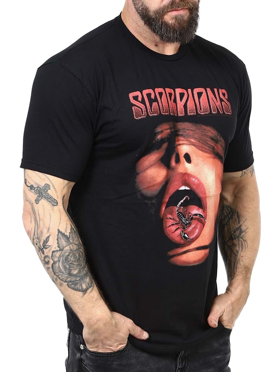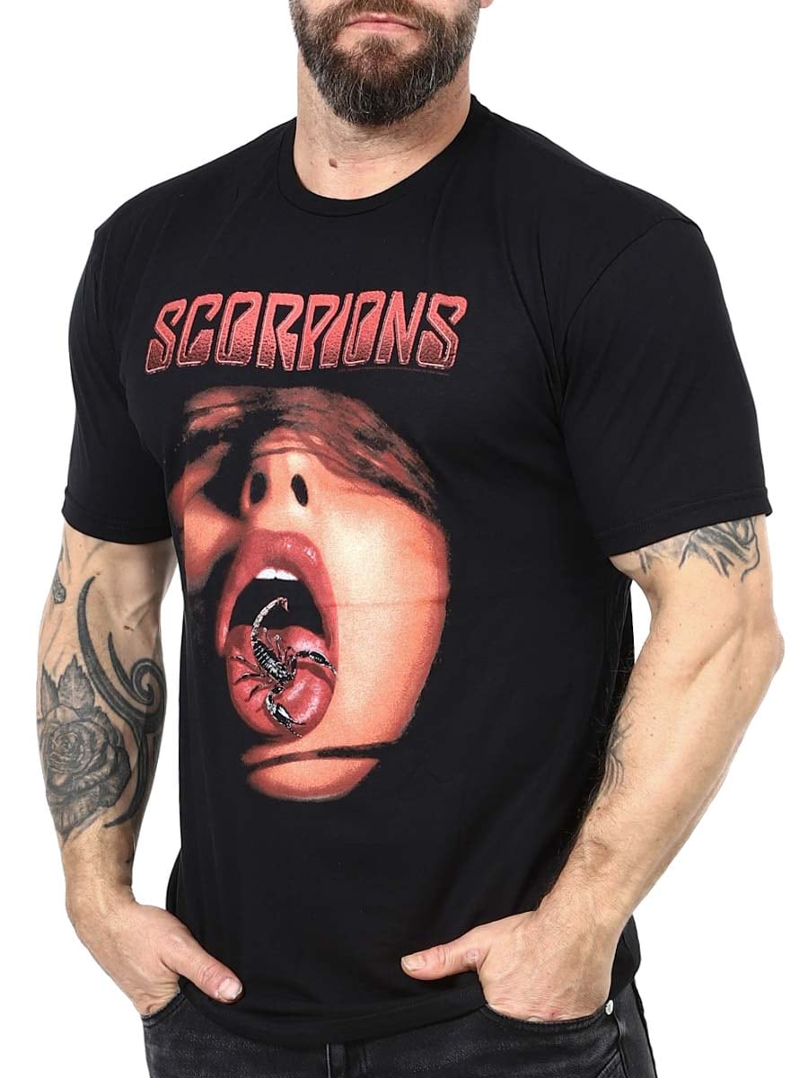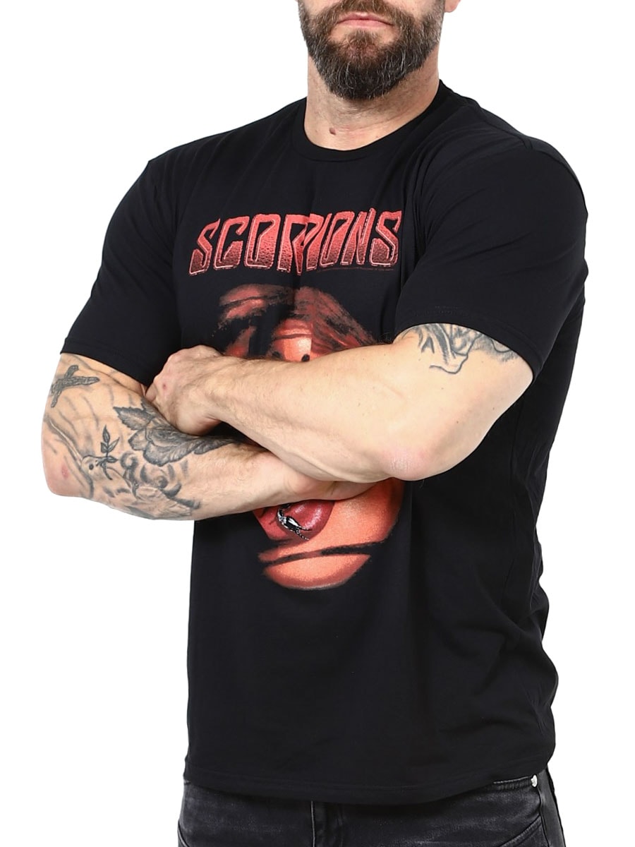 **Scorpions Tongue T-paita mustana on ikoninen kunnianosoitus legendaariselle rockyhtyeelle.**