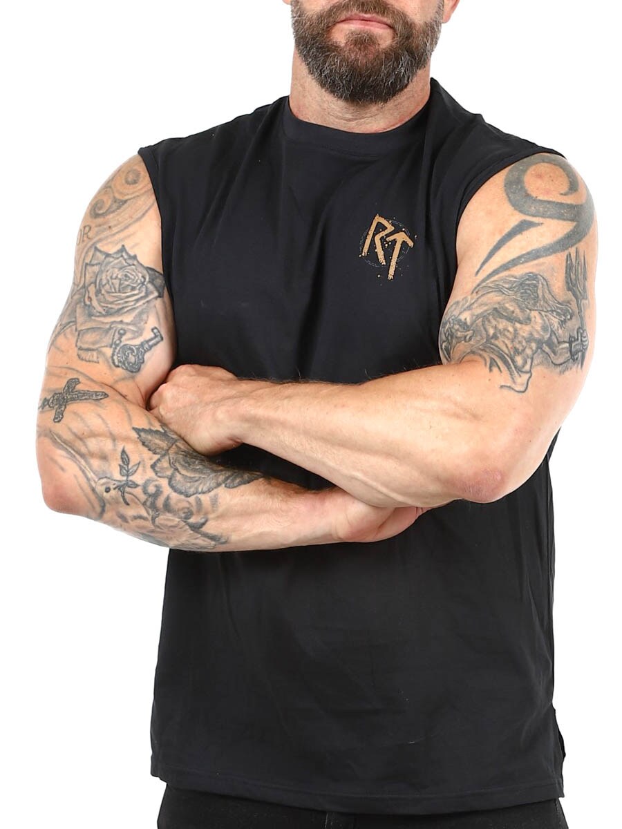 Tämä musta toppi yhdistää yksinkertaisuuden ja asenteen. Suuri printti selässä tekee vahvan vaikutuksen, kun taas pienempi printti edessä rinnassa viimeistelee ilmeen. Valmistettu pehmeästä puuvillasta, jossa on pyöreä pääntie ja lyhyt halkio helmassa. Saatavilla vain meiltä Rockdenimilta!