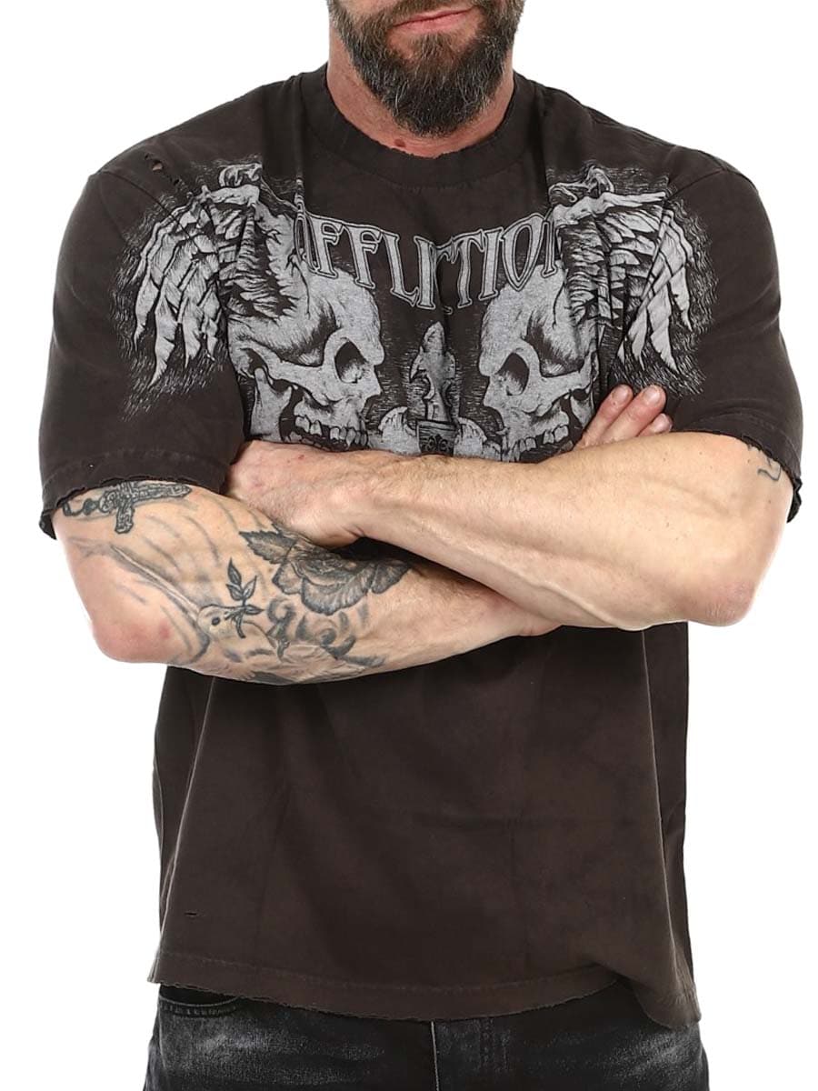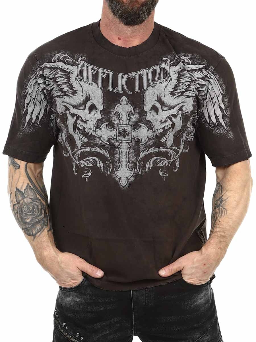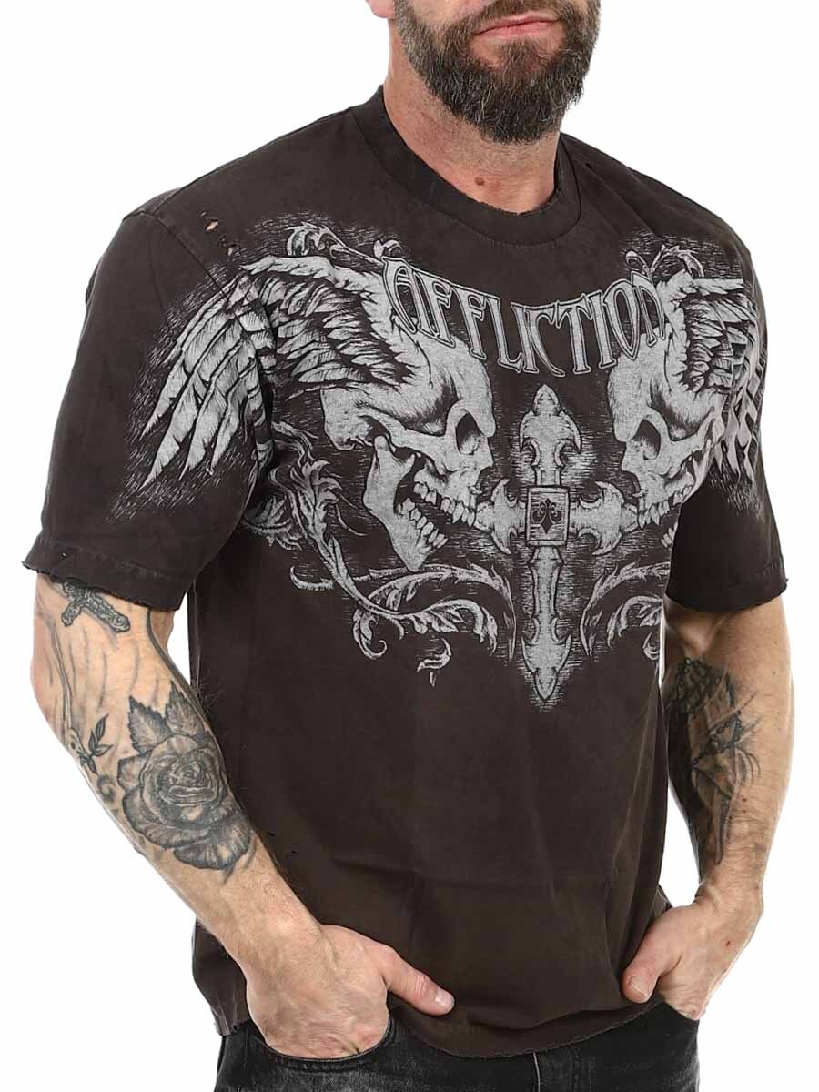 Uniikki ja tyylikäs t-paita, jossa on kulutuksia ja voimakkaita kuvioita. Haalistunut väri yhdessä siipien, pääkallon ja ristien kanssa luo rock-henkisen ilmeen, joka todella erottuu. Sinulle, joka haluat käyttää jotain, joka näkyy!