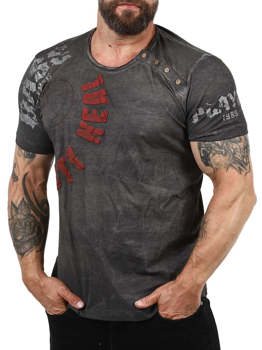 Uniikki t-paita tyylikkäillä yksityiskohdilla, joihin lukeutuvat 3D-painatus sekä kuvio. Napitus pitkin pyöreää kaula-aukkoa, joka mahdollistaa myös avaramman pääntien. Painettu kuvio etupuolella ja hihoissa. Punaiset kontrastisaumat sivuilla. Saatavilla useissa eri väriyhdistelmissä!