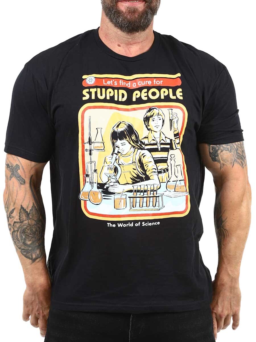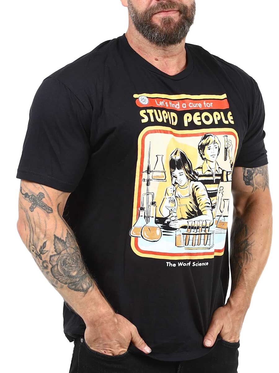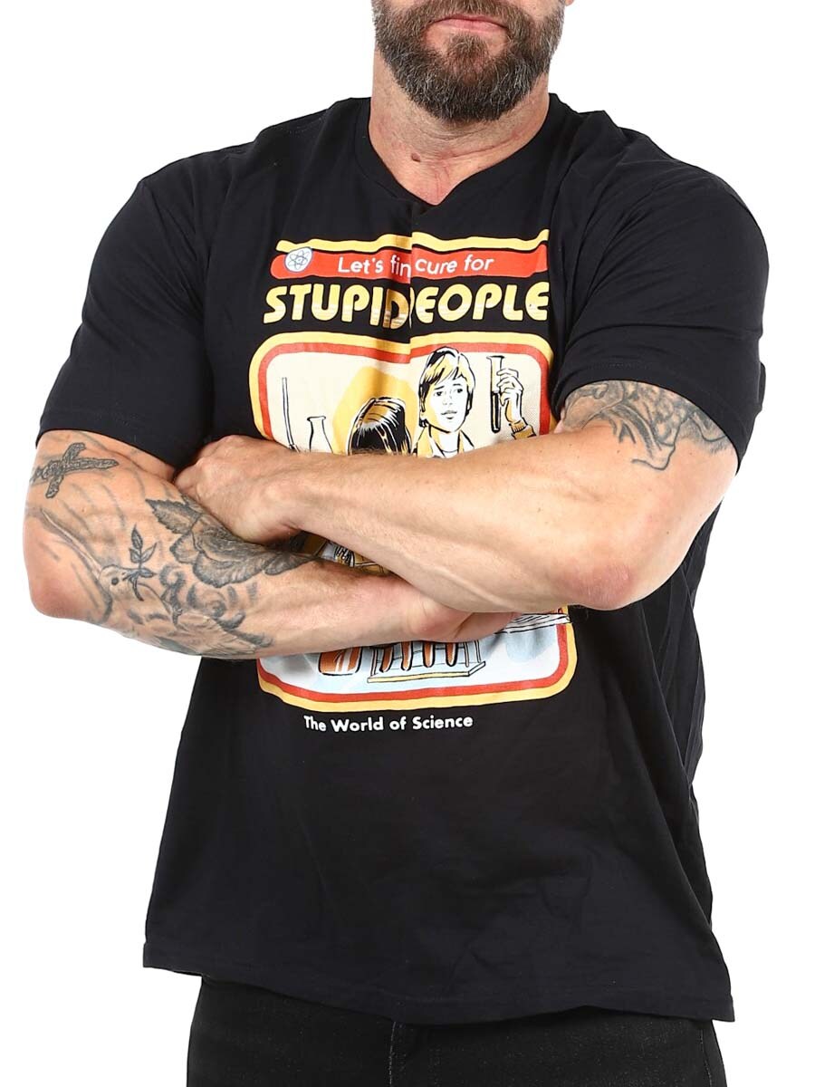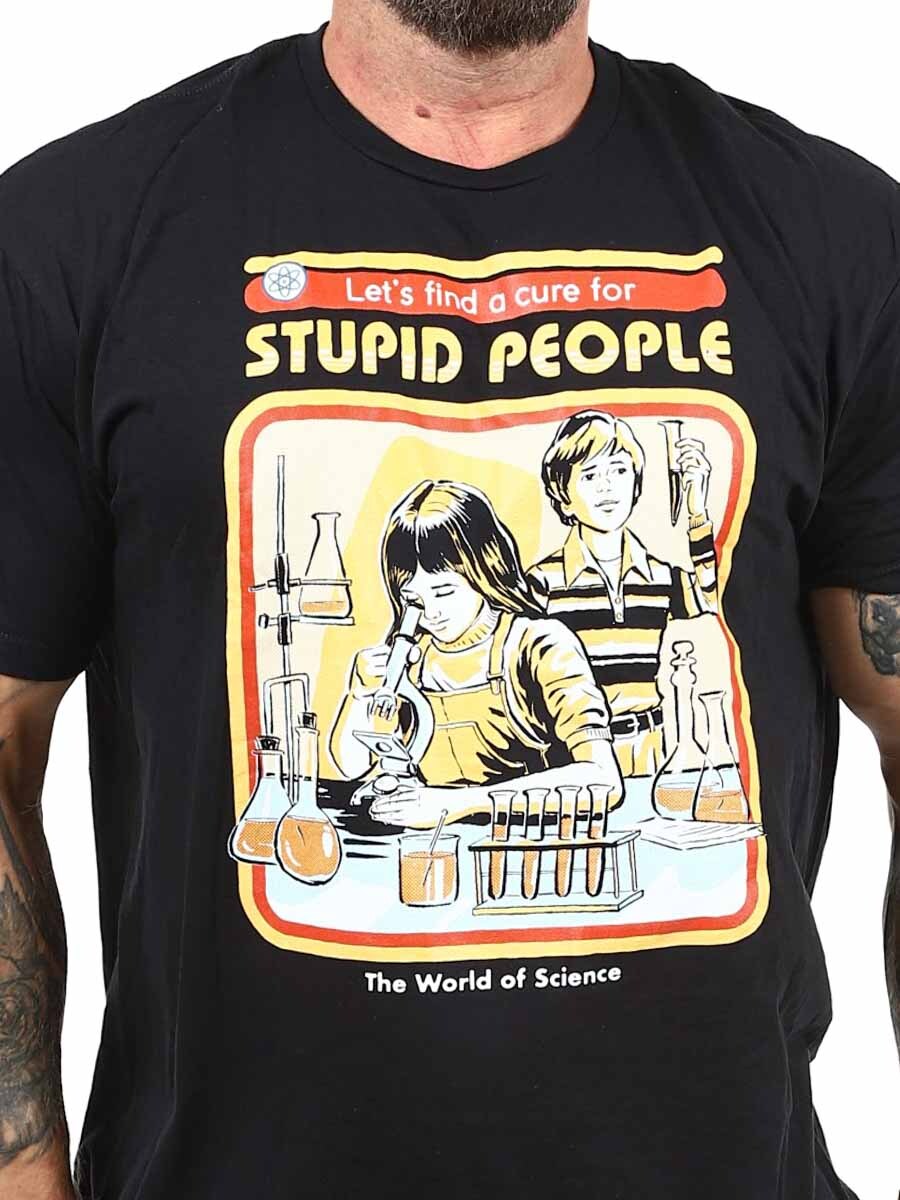 Musta "Let’s Find a Cure for Stupid People" T-paita