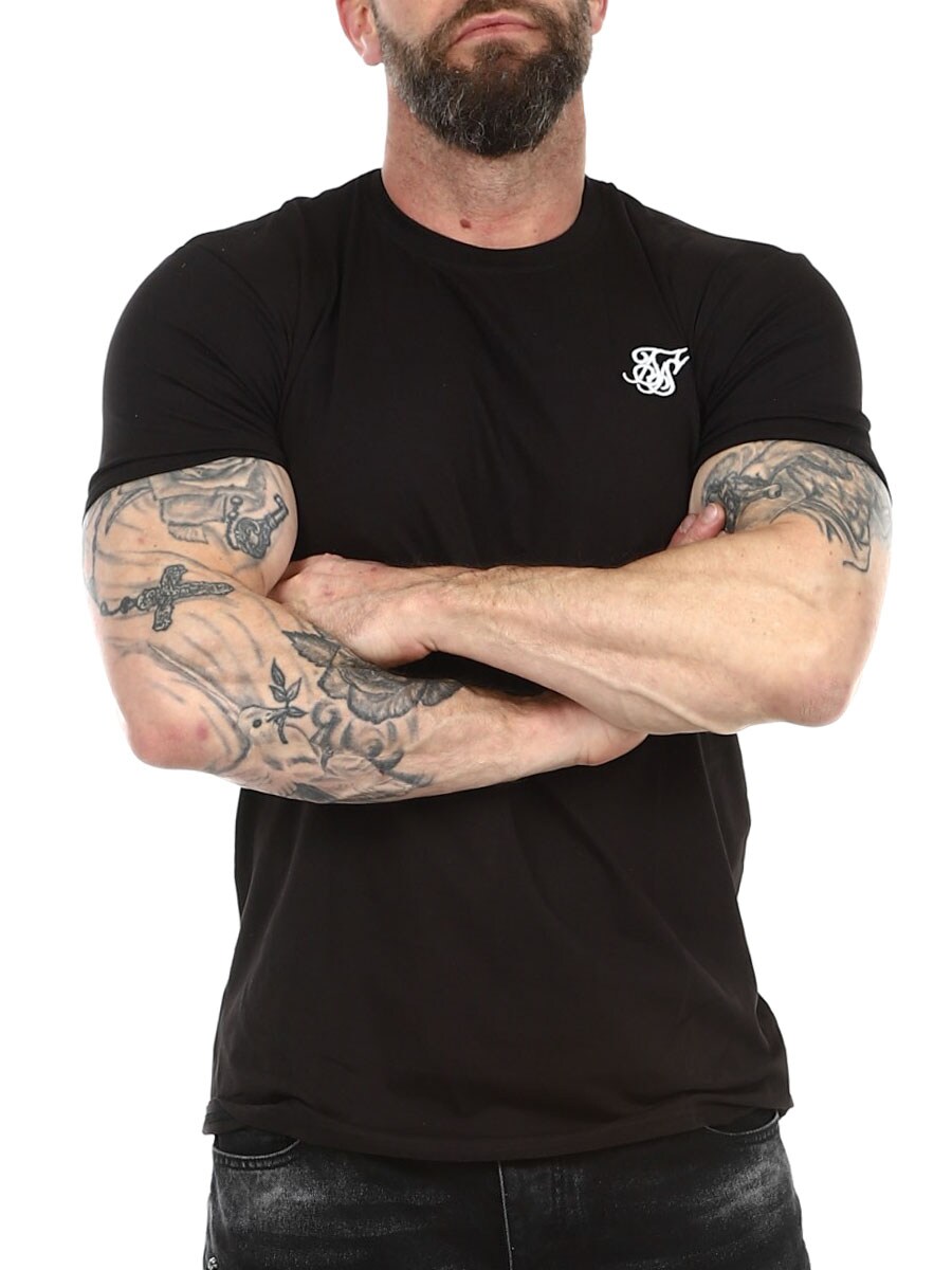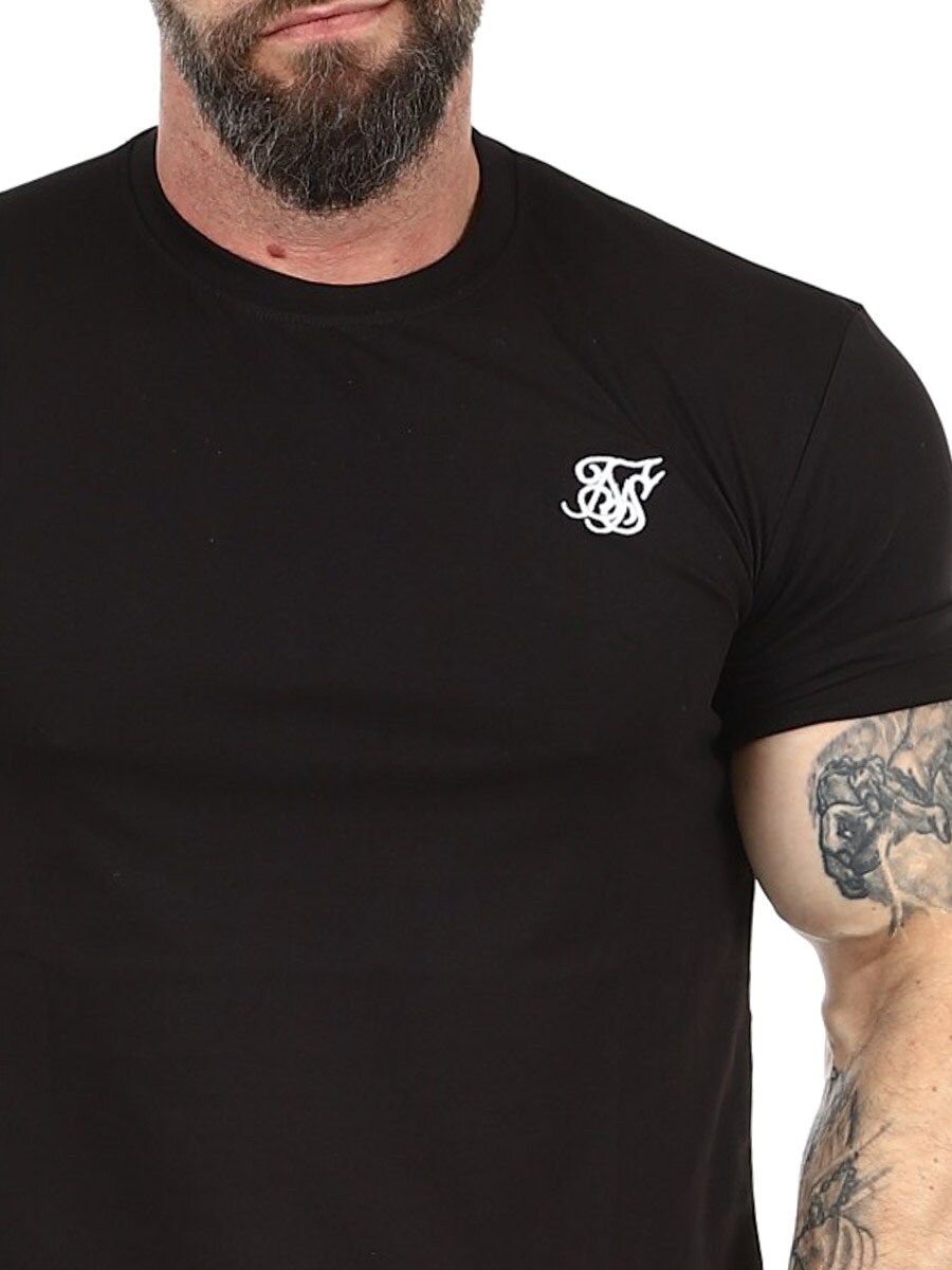 T-paidassa on pyöreä pääntie resorilla, joka takaa sekä mukavuuden että tyylikkään viimeistelyn. Rinnassa on brodeerattu SikSilk-logo, joka tuo hillityn, mutta eksklusiivisen yksityiskohdan. Pehmeä materiaali tekee paidasta miellyttävän koko päivän käytössä.