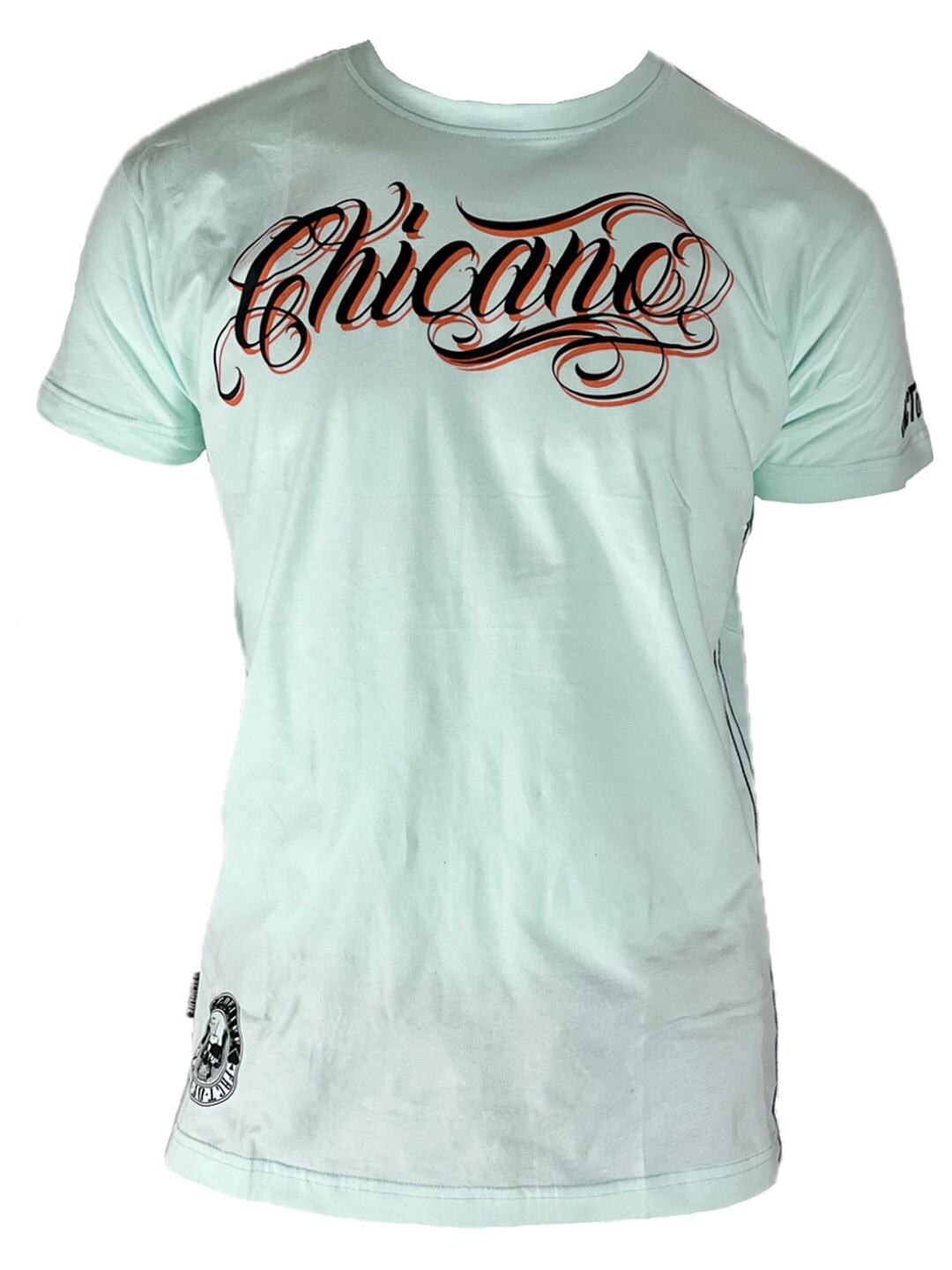 T-paita selkeällä street-henkisellä asenteella ja suurilla graafisilla painatuksilla edessä ja takana. Vaalea pohja yhdistyy rinnan “Chicano”-tekstiin sekä suureen, yksityiskohtaiseen selkäkuvioon. Täydellinen valinta sinulle, joka haluat käyttää t-paitaa, joka todella erottuu ja määrittää koko asun ilmeen!
