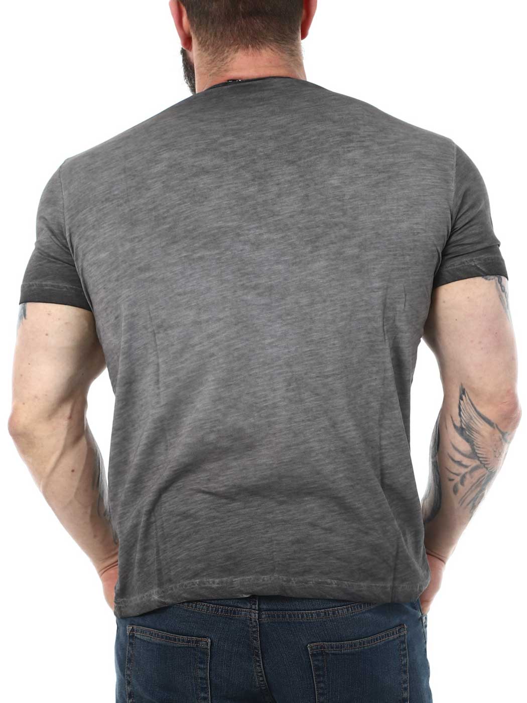 T-paita, jonka etupuolella on tyylikäs painatus. Pyöreä kaula-aukko viimeistelemättömillä reunoilla ja napeilla. Valmistettu joustavasta ja mukavantuntuisesta materiaalista.