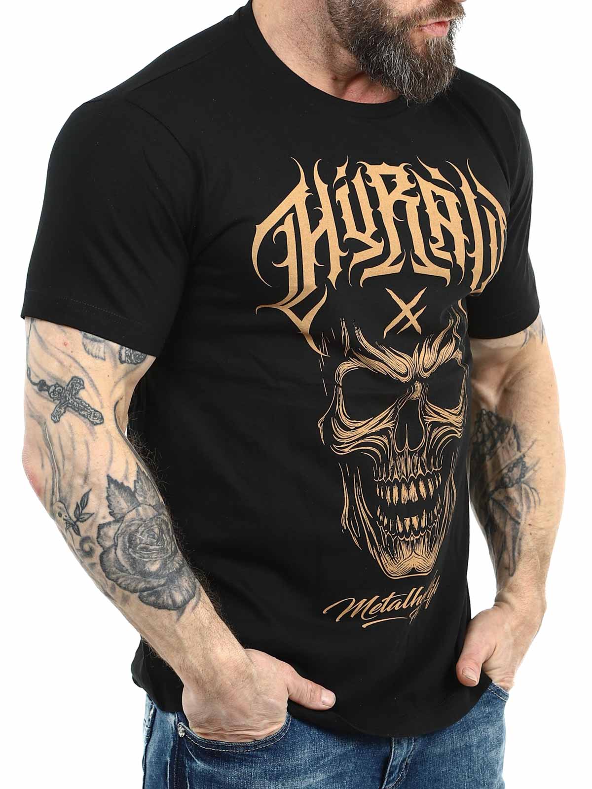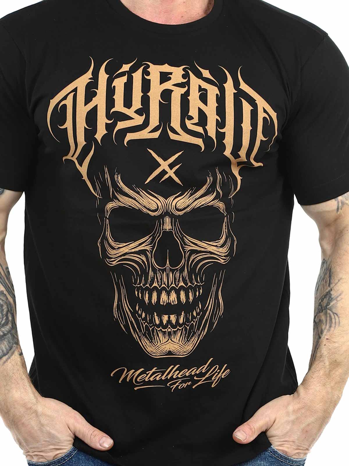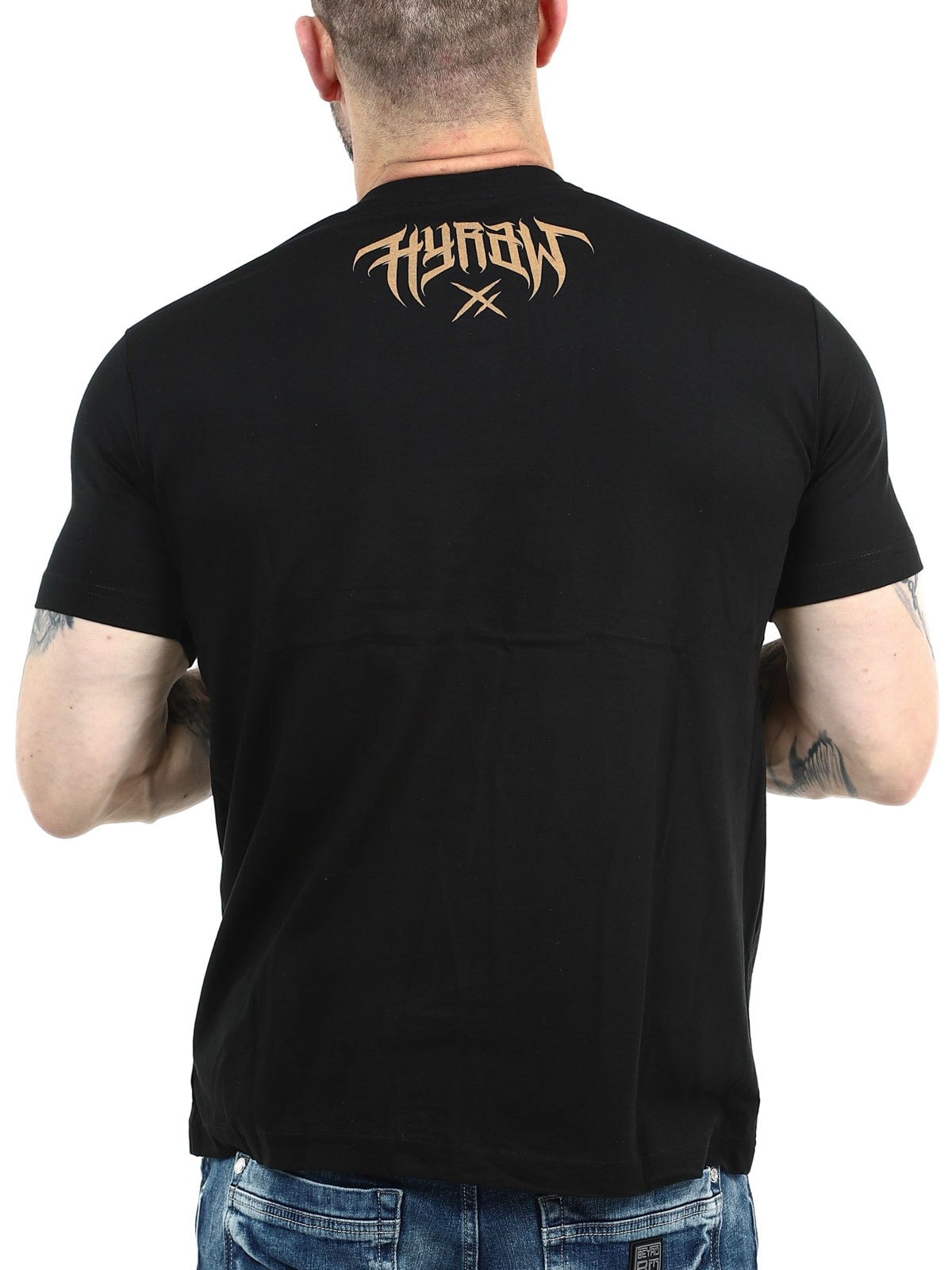 Musta t-paita, jossa on näyttävä kontrastivärinen painatus rinnassa sekä huomaamaton Hyraw-logo painettuna niskaan. Klassinen malli pyöreällä pääntiellä tarjoaa mukavan istuvuuden ja tekee paidasta helpon yhdistää kaikkeen farkuista streetwear-tyyliin.