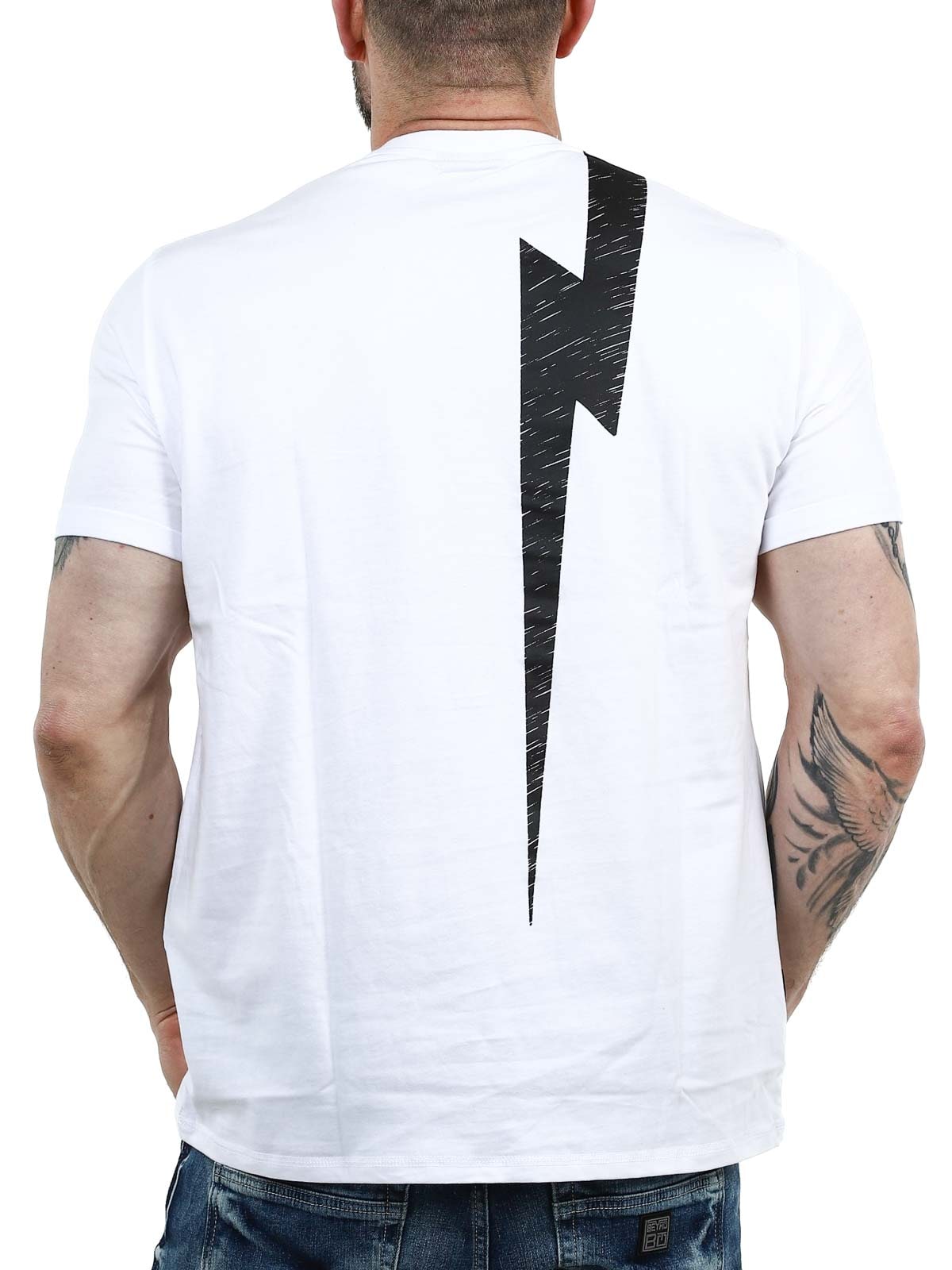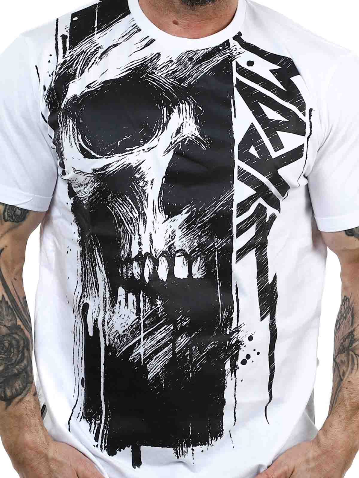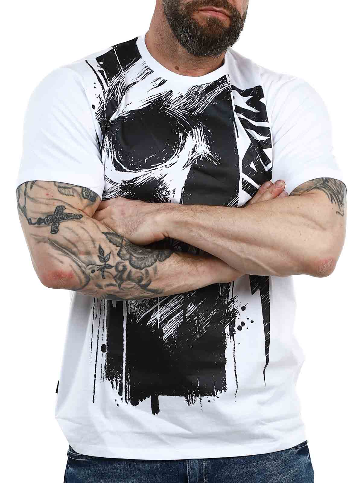 Nosta arkipäivätyylisi uudelle tasolle tällä valkoisella t-paidalla, joka yhdistää puhtaan, ajattoman pohjan voimakkaaseen mustaan painatukseen. Paidassa on suuri kuvio, joka peittää etuosan ja jatkuu kauniisti selän yli yhtenäisen ja modernin ilmeen luomiseksi. Valmistettu 100% pehmeästä puuvillasta klassisella istuvuudella.