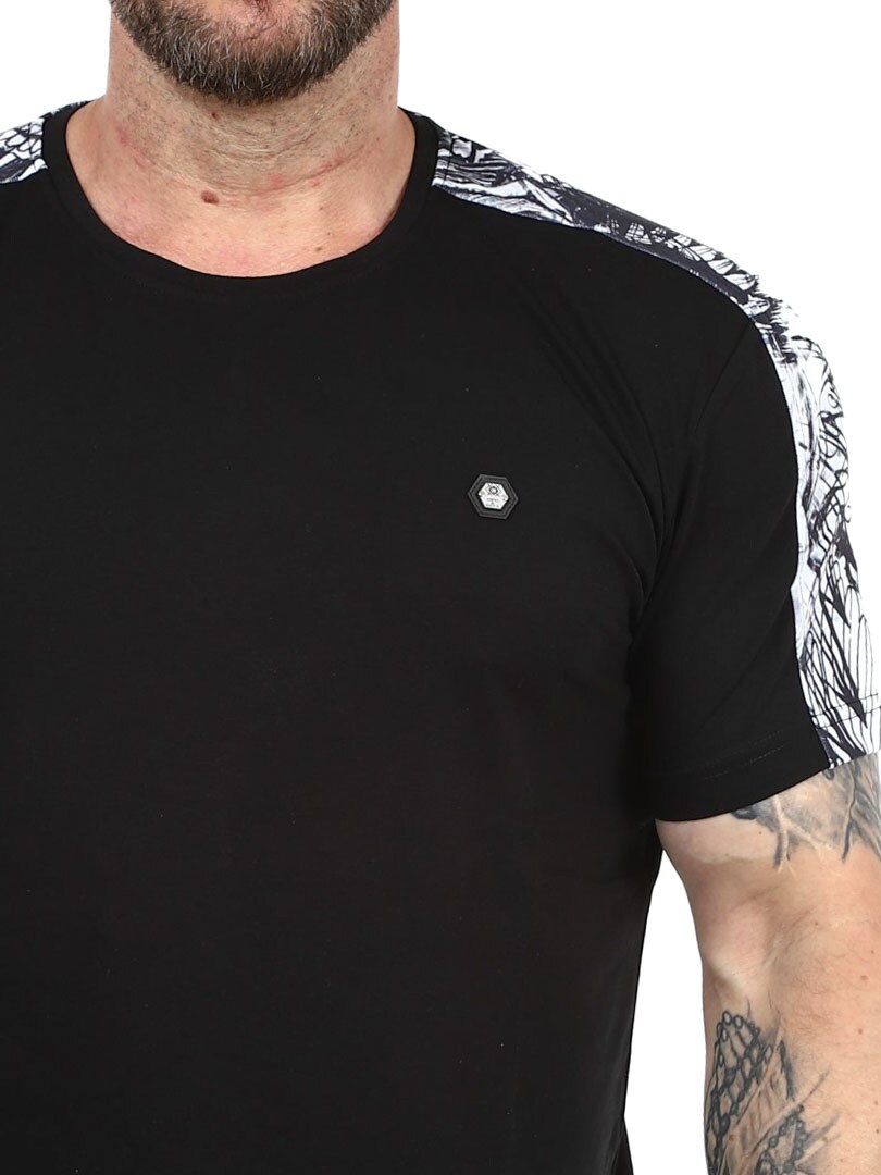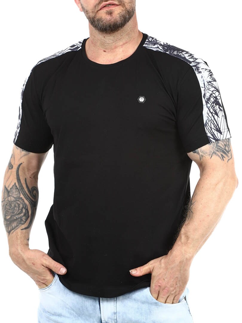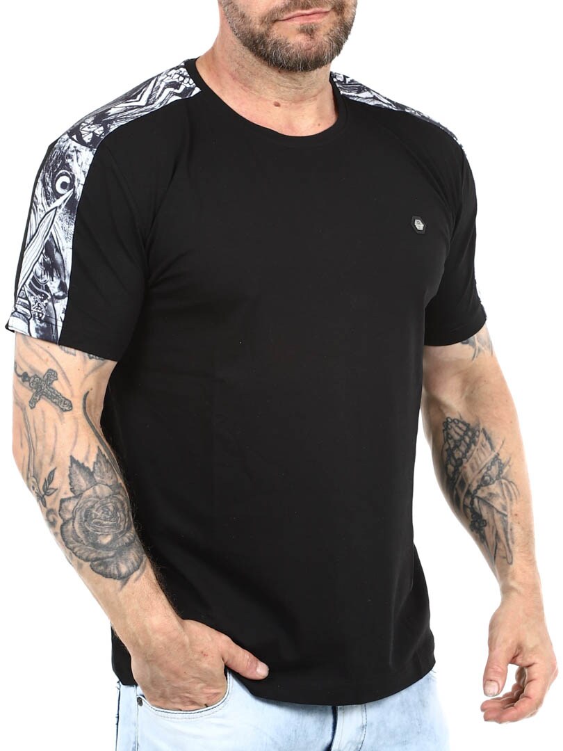 Tyylikäs T-paita, jossa on graafinen kuvio olkapäillä antamassa särmikästä twistiä. Klassinen malli, jossa on pyöristetty kaula-aukko. Valmistettu mukavasta ja joustavasta puuvillasekoitteesta.