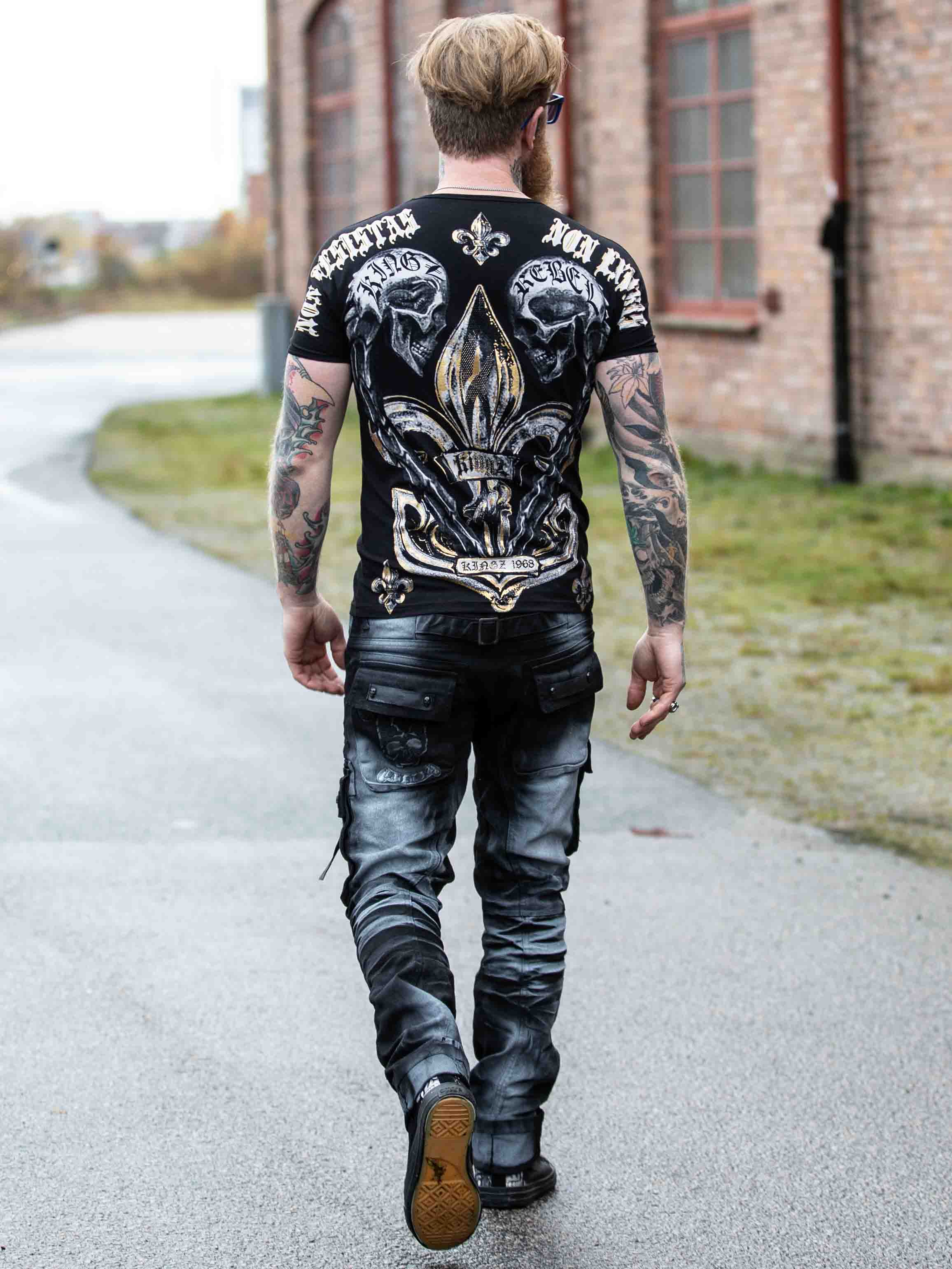 Pidempi huppari, jonka alaosassa on leikkaus. Yksityiskohtina mustia niittejä, merkkejä ja räätälöity logo takana. Kiristysnauhallinen huppu ja kaksi avointa etutaskua.
