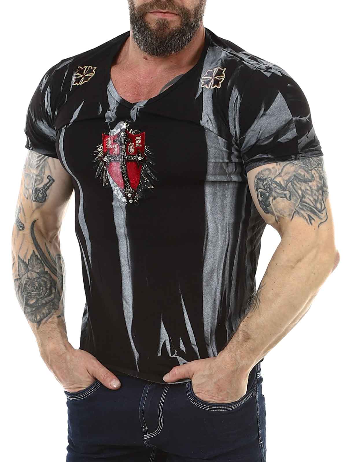 T-paita, joka on suunniteltu erottumaan ja tekemään vaikutus. Mustaa pohjaa rikastaa edessä oleva selkeä embleemi, joka tuo voimakkaan yksityiskohdan, kun taas selkää koristaa suuri ja yksityiskohtainen printti, joka todella herättää huomiota. Mallissa on kapea istuvuus ja se on valmistettu mukavasta puuvillamateriaalista.