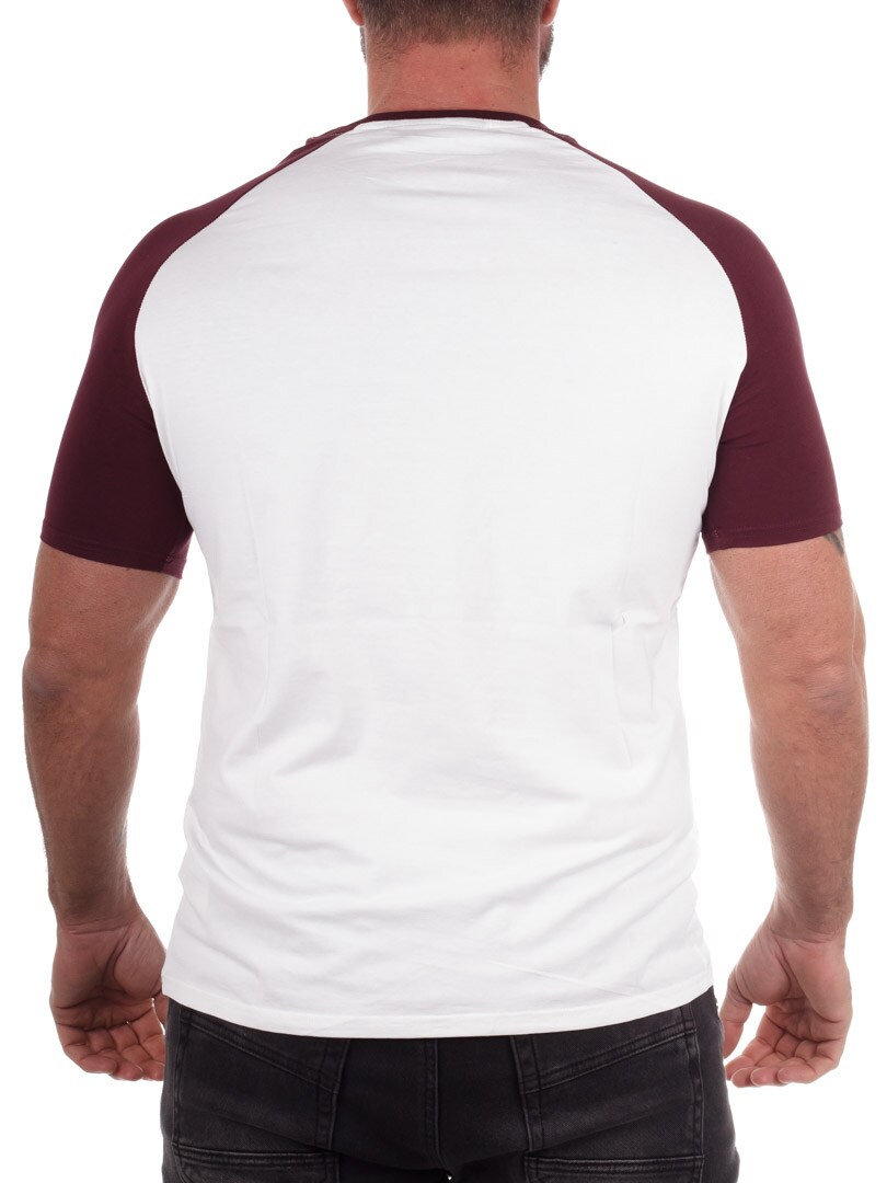 Tyylikäs valkoinen T-paita viininpunaisilla hihoilla ja mustalla brodeeratulla logolla rinnassa. Täydellinen valinta sinulle, joka haluat yhdistää mukavuuden, sporttisen ilmeen ja modernin muotoilun. T-paita on valmistettu pehmeästä ja joustavasta materiaalista, joka seuraa liikkeitäsi menettämättä muotoaan.