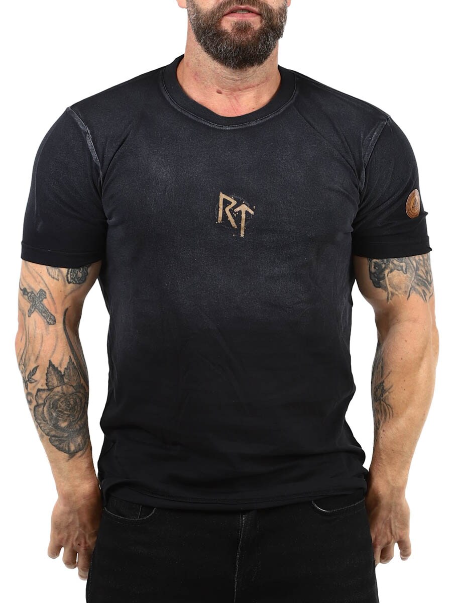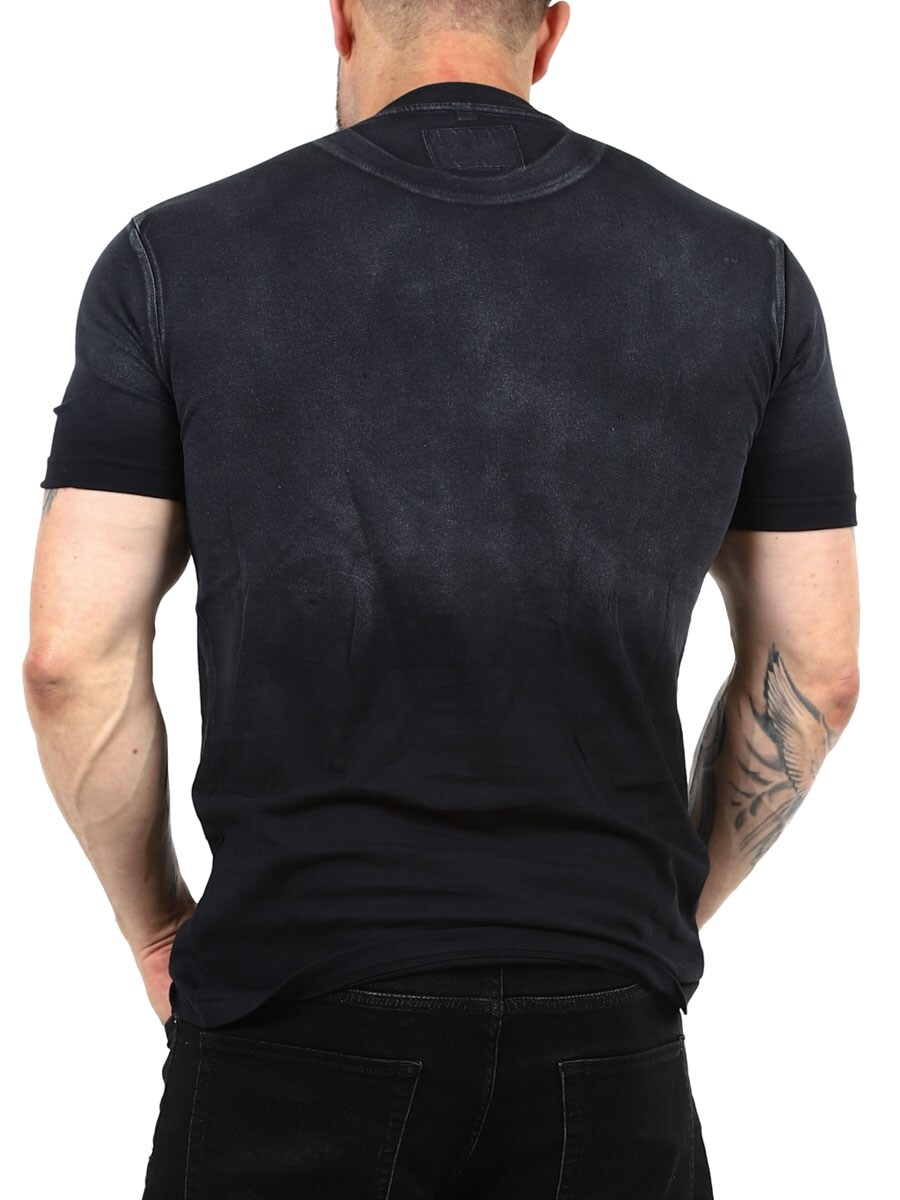 Tämä T-paita vie klassisen mustan vaatteen uudelle tasolle. Yläosan vaaleampi sävy luo modernin gradienttiefektin, joka elävöittää mallia kuitenkaan liioittelematta. Klassinen malli, jossa on pyöristetty, ribbattu kaulus maksimaalisen mukavuuden takaamiseksi. Saatavana vain Rockdenimiltä!