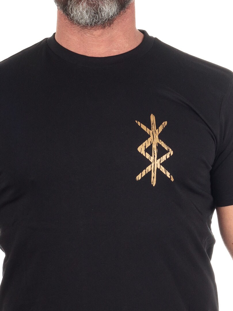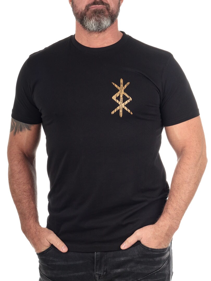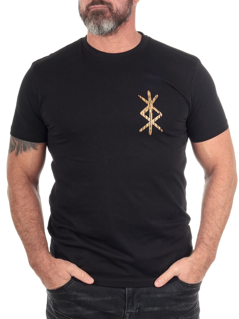 RockDenim RD Varin T-paita mustana on mukava puuvillapaita, joka erottuu eksklusiivisella viikinkihenkisellä painatuksella.
