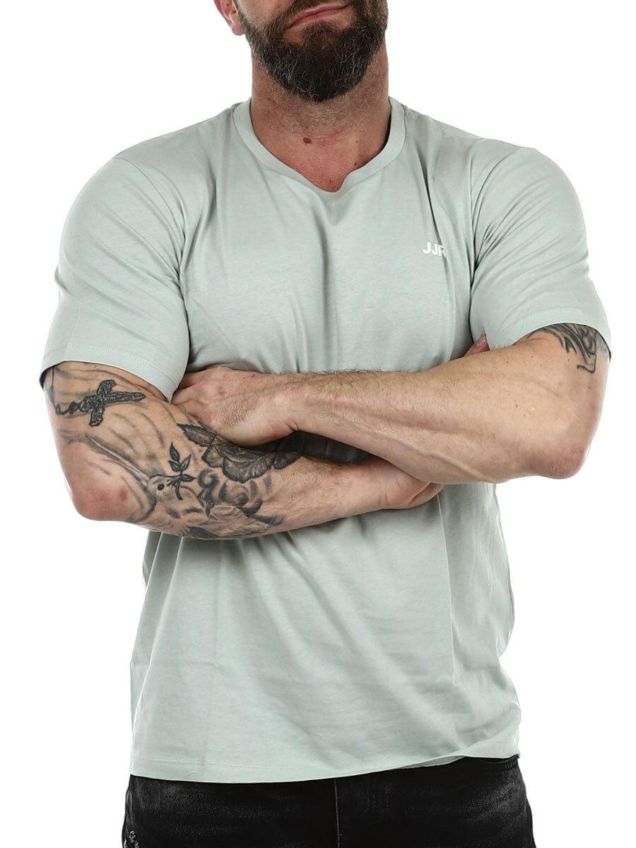Yksinkertainen ja tyylikäs T-paita, jonka voit yhdistää mihin tahansa vaatekaapistasi löytyvään vaatekappaleeseen. Valmistettu pehmeästä ja joustavasta jerseystä. T-paidan malli on klassinen ja siinä on pyöreä kaula-aukko. Hillitty JJR-logo rinnassa saa sen näyttämään pelkistetyltä ja modernilta.