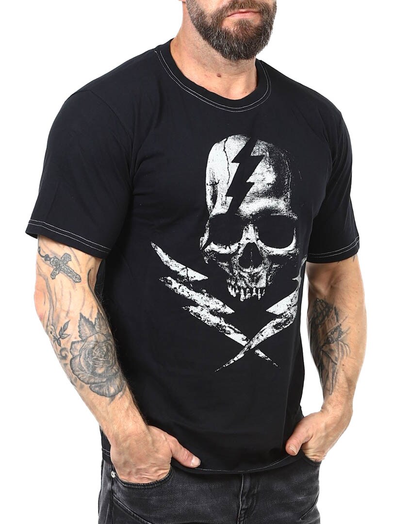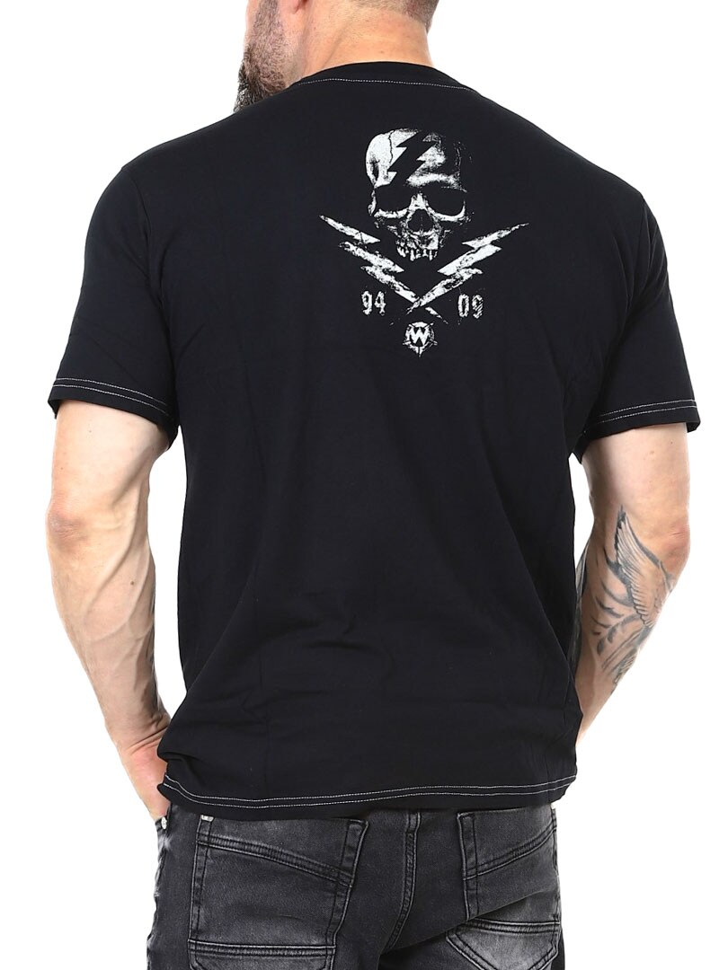 Wornstar Thunderstruck T-paita mustana on käsintehty puuvillapaita, jossa on ainutlaatuiset kontrastitikkaukset ja rock-henkinen pääkallomotiivi.