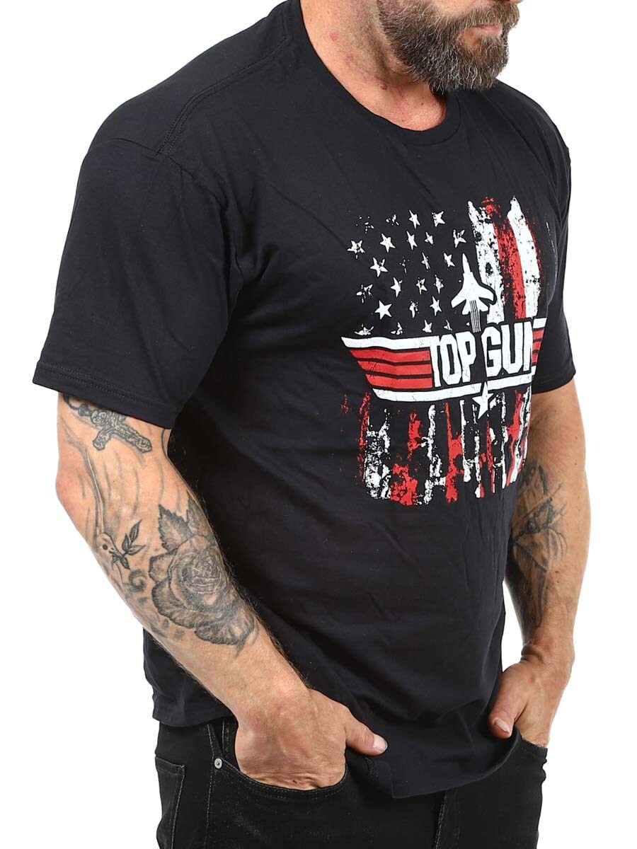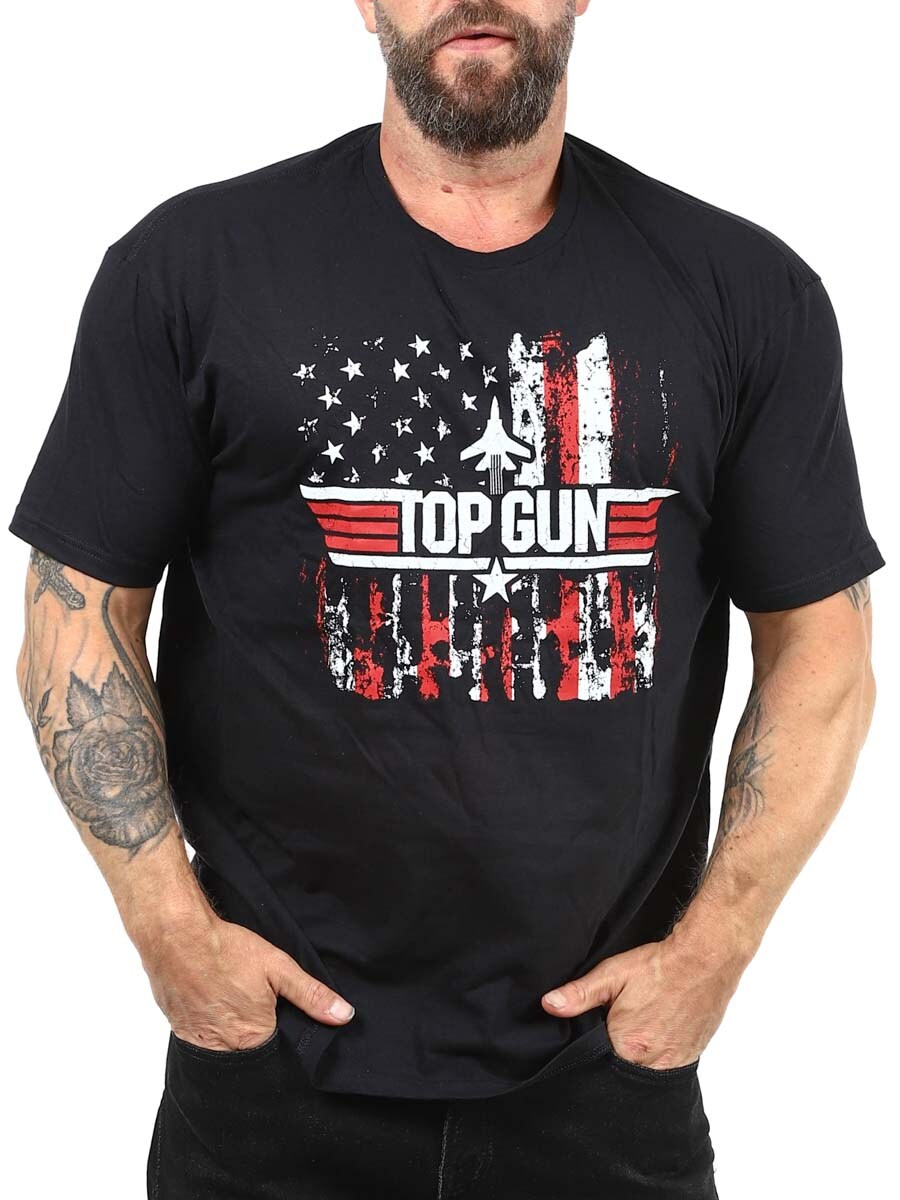Tämä musta Top Gun -t-paita on ehdoton hankinta kaikille klassisten toimintaelokuvien ja ikonisen kasarityylin ystäville. Klassinen malli ja pyöristetty kaula-aukko. Valmistettu 100 % puuvillasta.