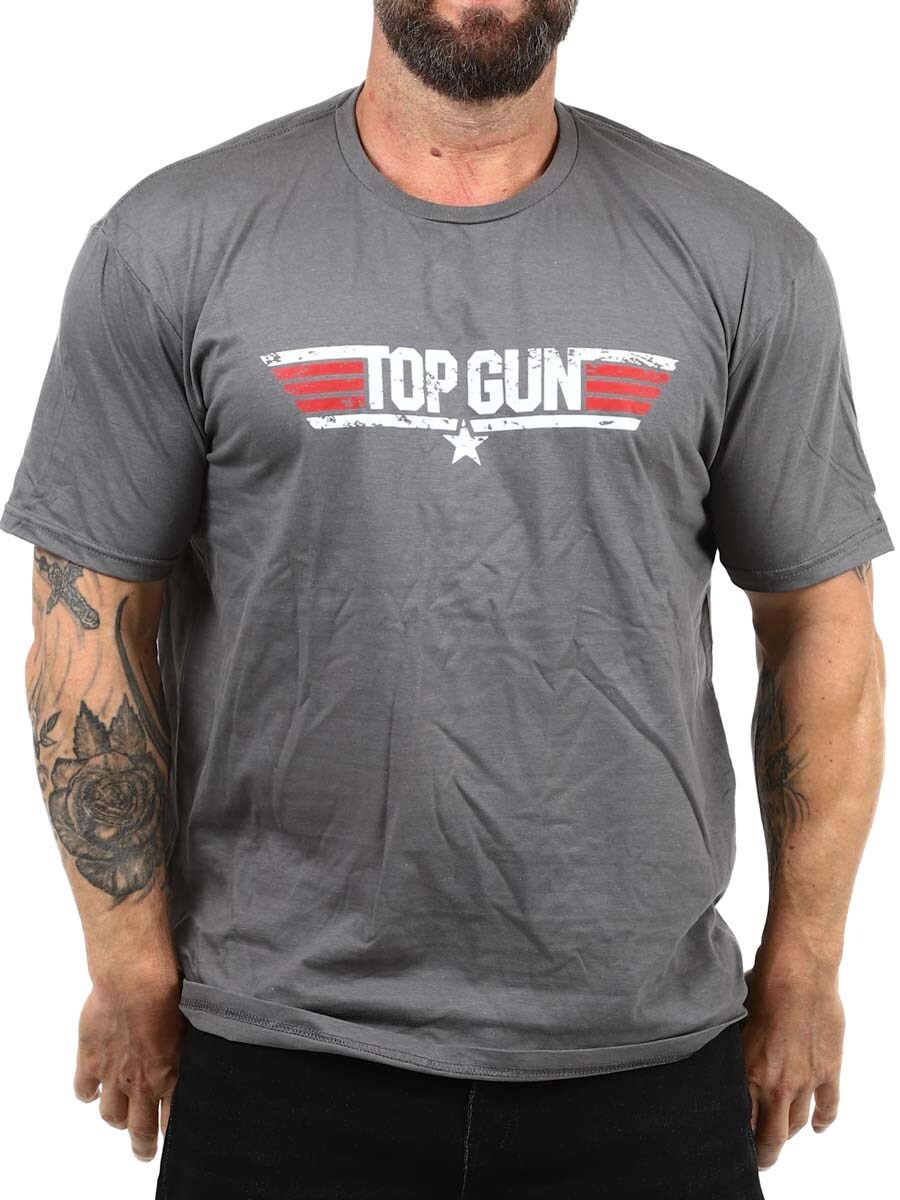 Tämä harmaa Top Gun -t-paita on ehdoton hankinta kaikille klassisten toimintaelokuvien ja ikonisen kasarityylin ystäville. Klassinen malli ja pyöristetty kaula-aukko. Valmistettu 100 % puuvillasta.