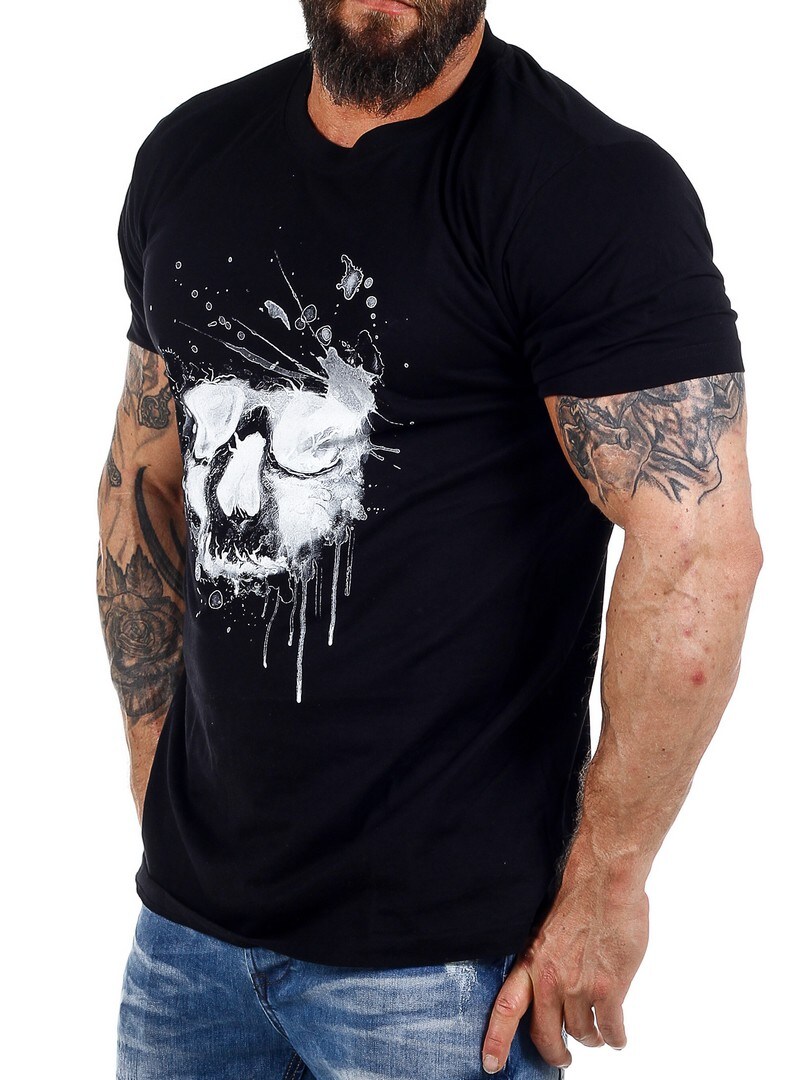 Kaunista puuvillamateriaalia, klassinen malli ja pääkallopainatus etupuolella.