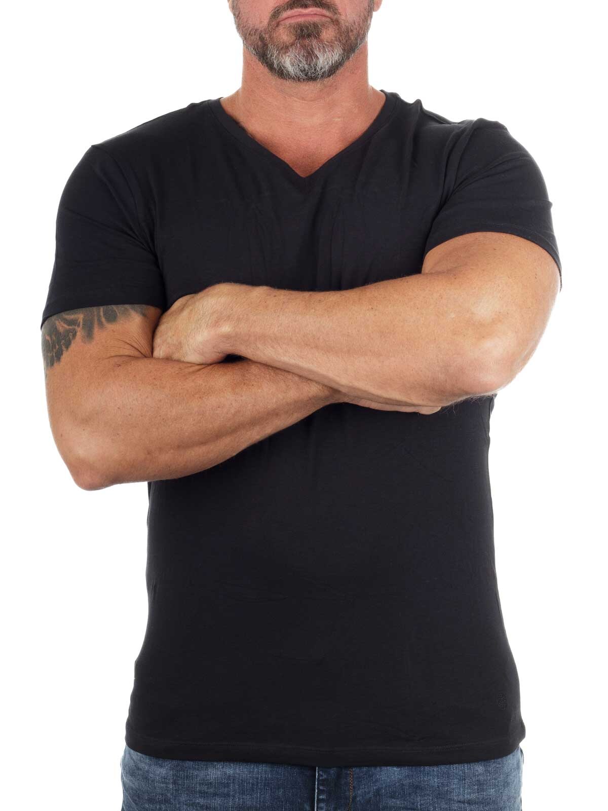Yksiväriset t-paidat kahden kappaleen pakkauksessa. Joustava malli, jossa on vartalonmyötäinen istuvuus ja V-pääntie. Hieman ohuempi materiaali – täydellinen käytettäväksi paidan tai neuleen alla.