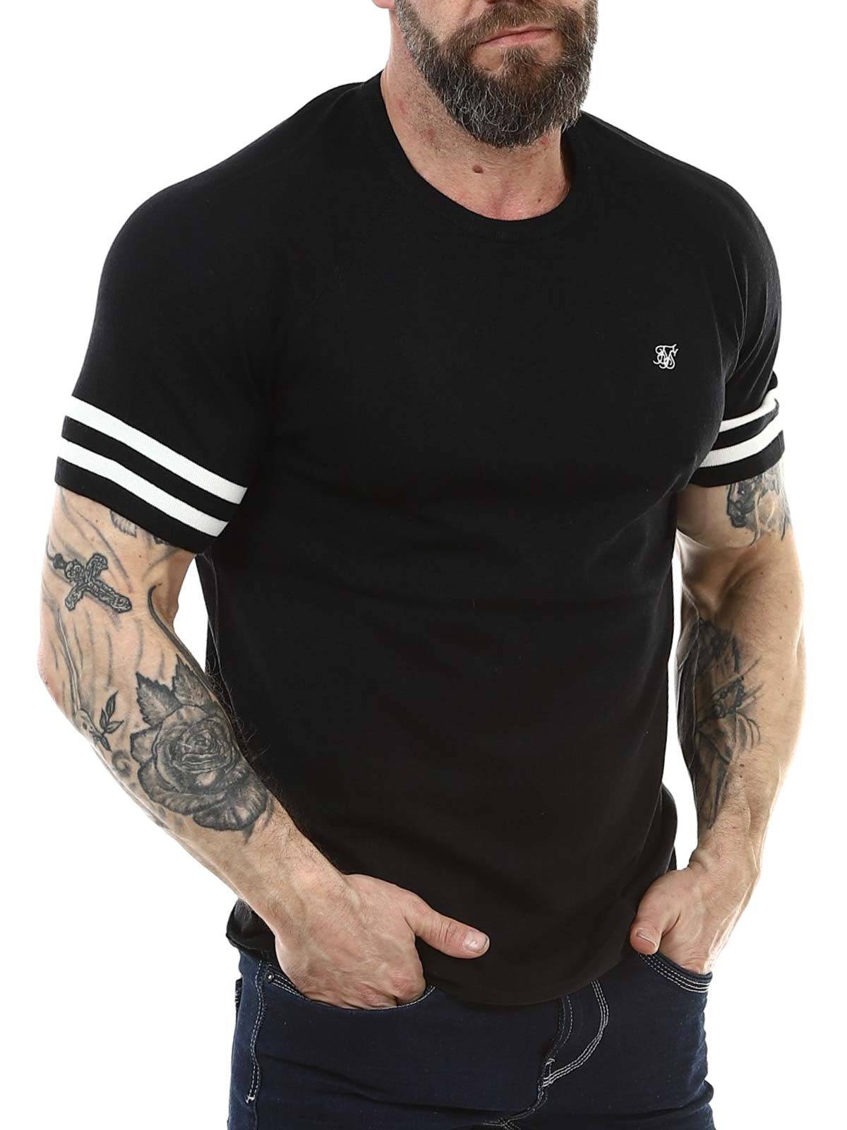 Yksivärinen T‑paita, jossa SikSilk-logo rinnassa ja raidat hihoissa. T‑paidan klassinen pyöreä pääntie ja lyhyet hihat antavat ajattoman ilmeen. Valmistettu pehmeästä ja joustavasta materiaalista.