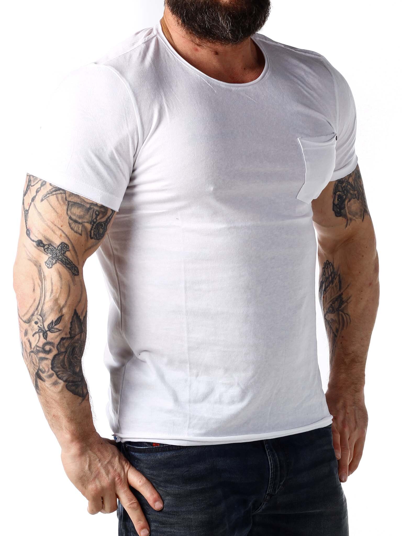Superpehmeä T-paita pyöreällä kaula-aukolla ja karkeilla reunoilla. Rintatasku ja merkkilappu alaosassa. Valmistettu 100 % puuvillasta.