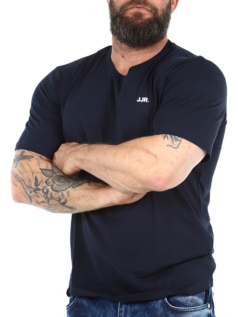 Yksinkertainen ja tyylikäs T-paita, jonka voit yhdistää mihin tahansa vaatekaapistasi löytyvään vaatekappaleeseen. Valmistettu pehmeästä ja joustavasta jerseystä. T-paidan malli on klassinen ja siinä on pyöreä kaula-aukko. Hillitty JJR-logo rinnassa saa sen näyttämään pelkistetyltä ja modernilta.