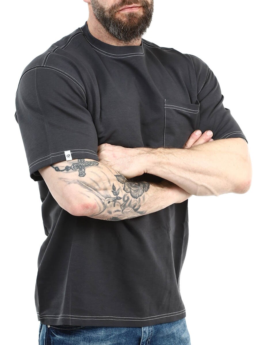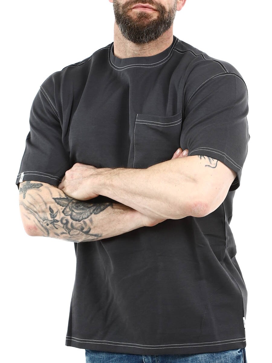 Tyylikäs t-paita klassisella istuvuudella ja pyöreällä pääntiellä. Suunniteltu valkoisilla korostetuilla saumoilla sekä avoimella rintataskulla. Sopii yhtä hyvin arkeen kuin siistimmän asun perusvaatteeksi.
