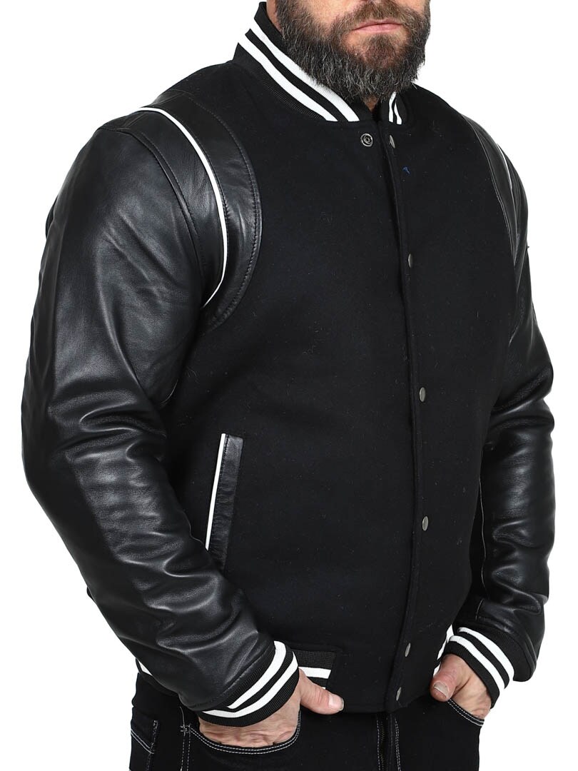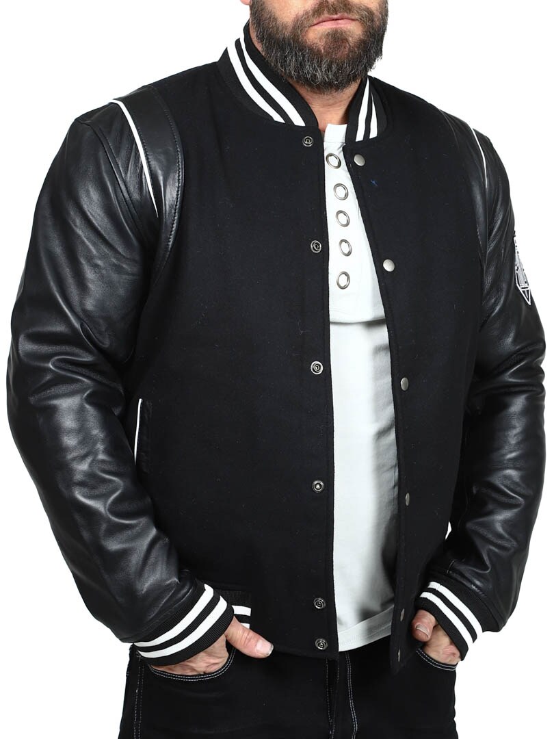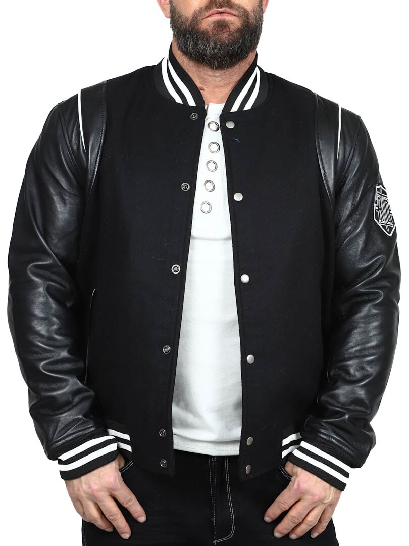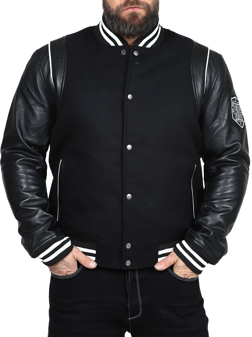 Tämä collegetakki on täydellinen yhdistelmä klassista ja modernia. Päällinen on pehmeää huovutettua illaa ja hihansuut valmistettu aidosta nahasta, mikä saa aikaan eksklusiivisen ilmeen ja takaa kestävyyden. Kauluksessa, hihansuissa ja helmassa kribbiresorit klassisilla raidoilla. Kaksi etutaskua ja kaksi sisätaskua. Takki on itsestään selvä valinta niille, jotka haluavat yhdistää tyylin ja mukavuuden ajattomaan lookkiin!
