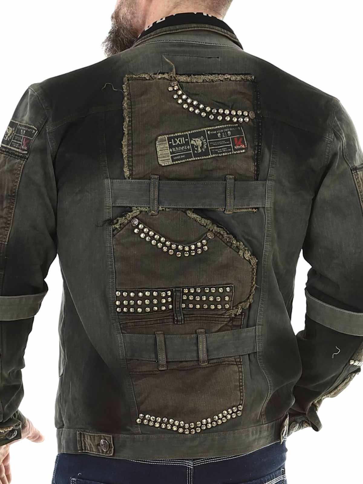 Farkkutakki asenteella, suunniteltu erottumaan. Sinivihreä sävy antaa uniikin ilmeen, kun taas raaka yksityiskohdat, kuten niitit, remmit ja vetoketjut, vahvistavat kapinallista tunnelmaa. Suunniteltu napituksella, kauluksella ja säädettävillä hihansuilla napilla.