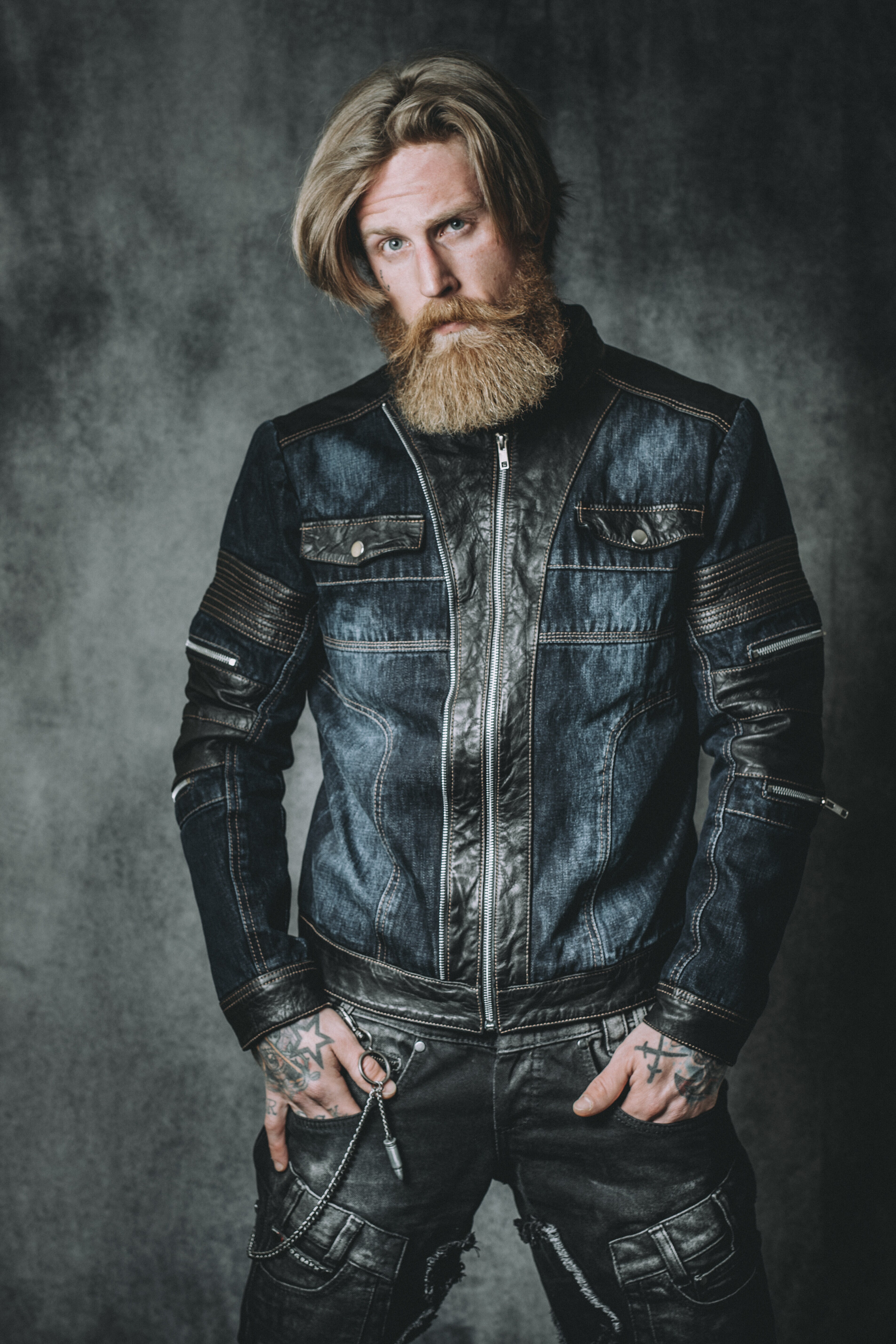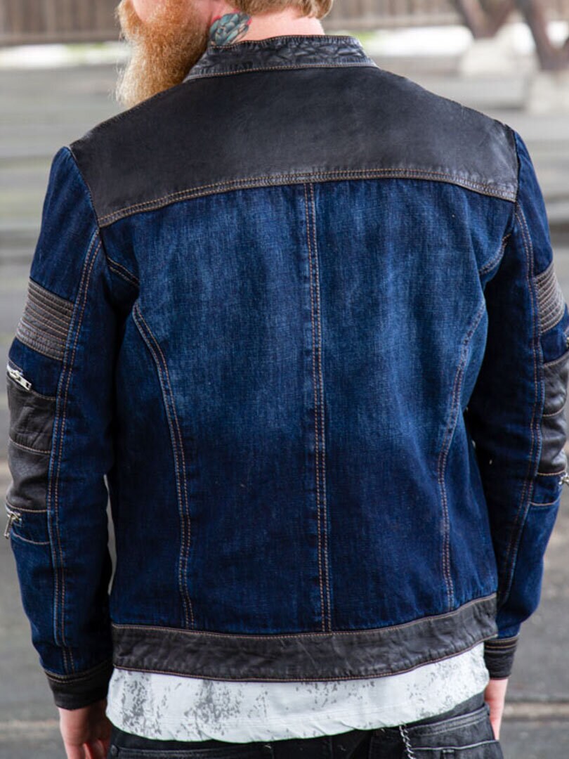 Takki, jossa yhdistyvät farkun ja nahan parhaat puolet! Runsaasti sekä suljettavia että avonaisia taskuja. Rouheat hopeiset vetoketjut taskuissa ja takin avauskohdassa. Eksklusiivisesti vain RockDenim.comista!