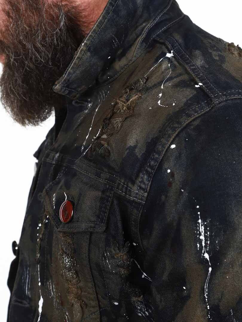 Tämä farkkutakki on todellinen tyyli-ikoni, jossa on karkea ja ainutlaatuinen viimeistely. Erottuvat väriläiskät ja kulunut pinta antavat takille taiteellista ja kapinallista ilmettä, kun taas klassiset napit ja taskut edustavat ajattoman farkkutakin luonnetta. Tämä takki on täydellinen niille, jotka haluavat erottua joukosta ja lisätä asuunsa särmikkään säväyksen!