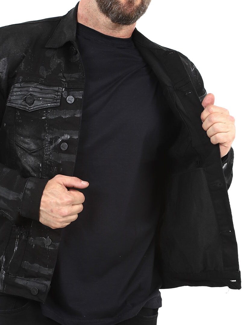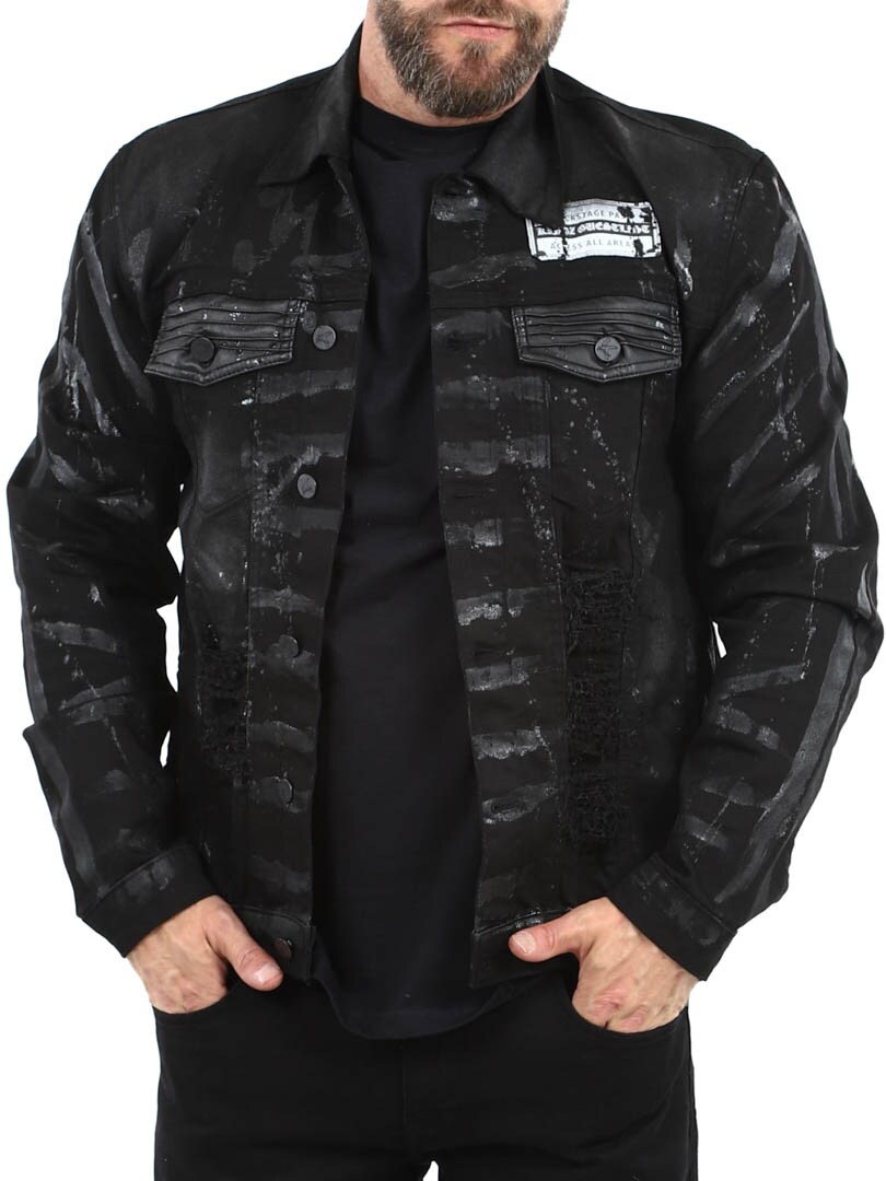 Herätä huomiota tällä rohkealla farkkutakilla, jonka ainutlaatuinen spray-maalitehoste luo kapinallisen ilmeen, joka huokuu asennetta. Takissa on kuluneita yksityiskohtia, neljä etutaskua ja nappikiinnitys.