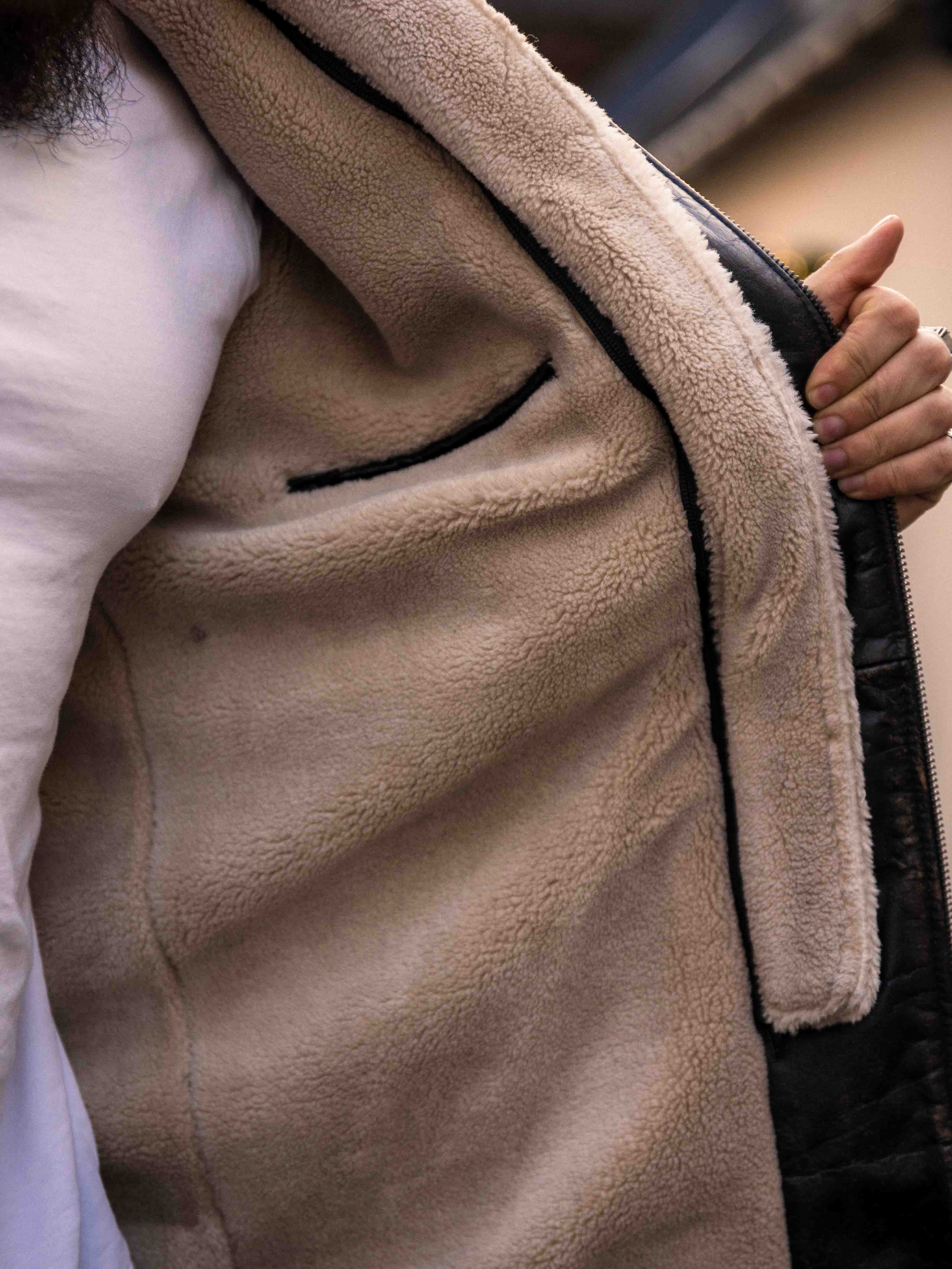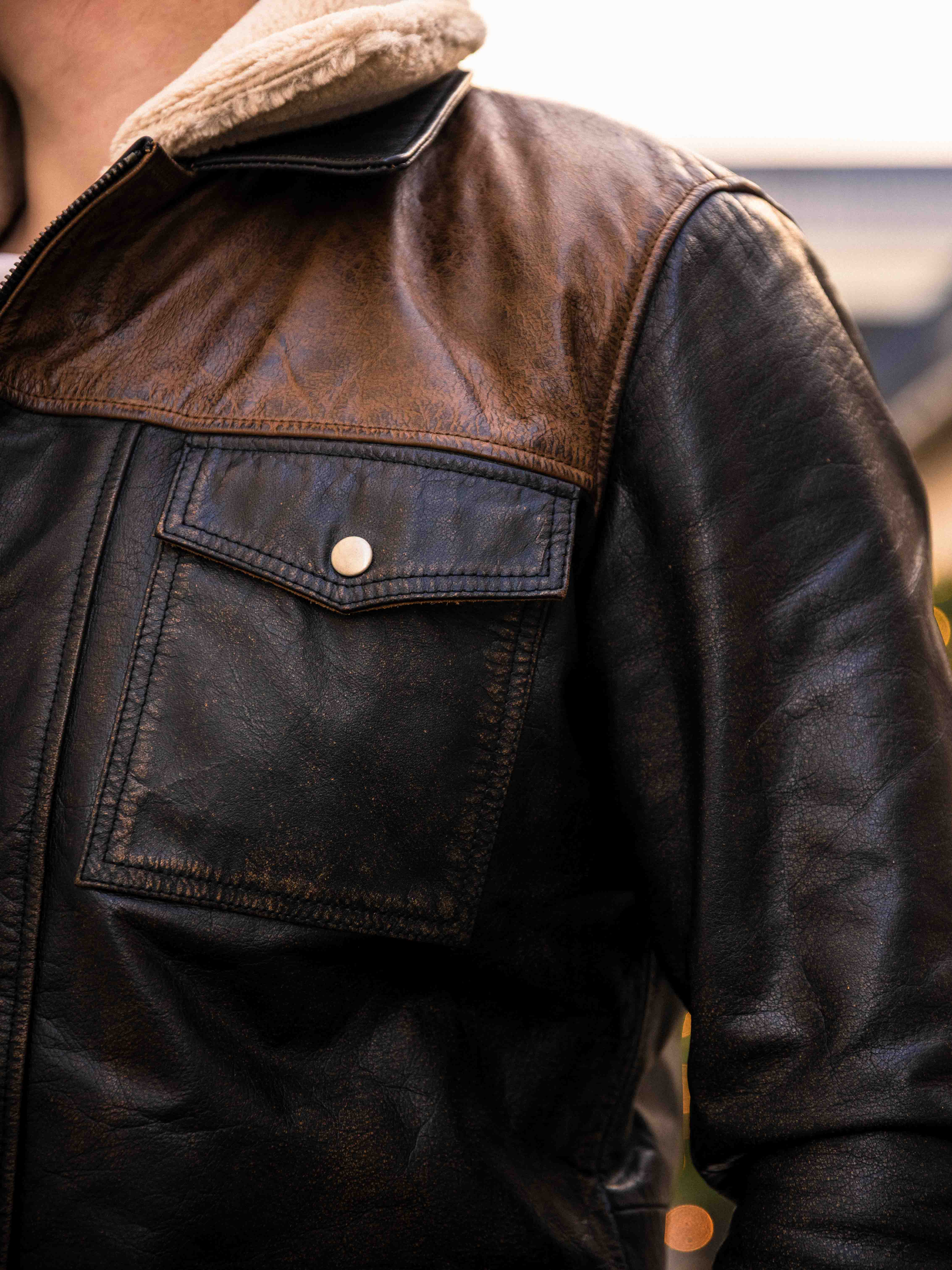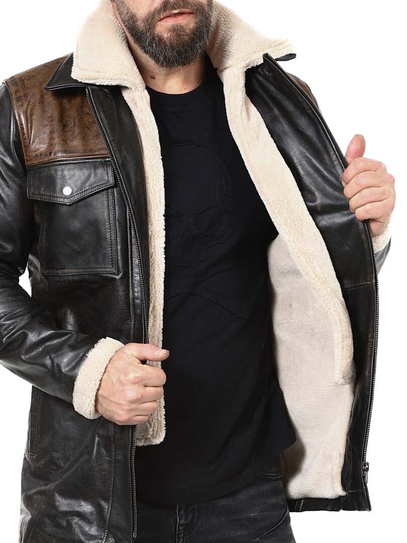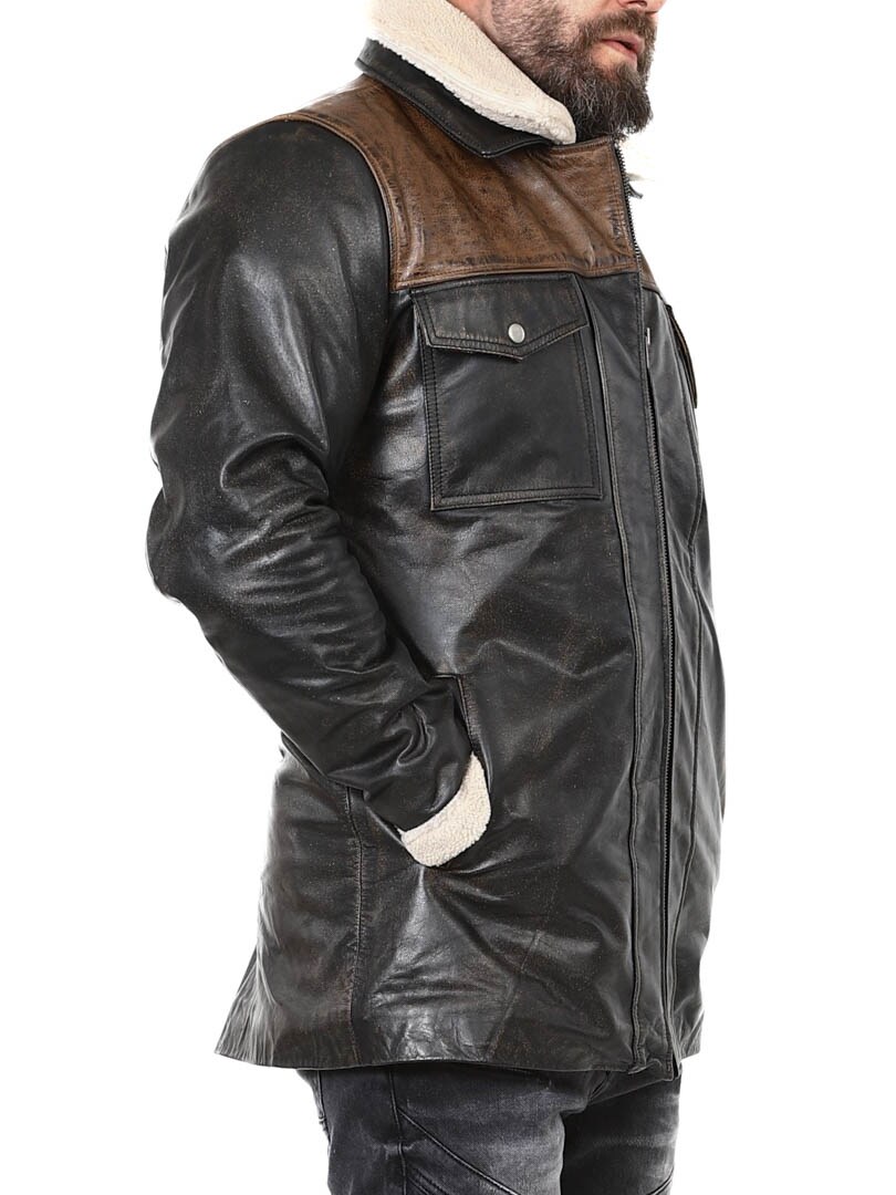 Vankka ja näyttävä takki, joka on valmistettu aidosta puhvelinnahasta – muotoilu huokuu itsevarmuutta ja asennetta. Mustan nahan ja kontrastiväristen ruskeiden olkapääosien yhdistelmä luo erottuvan ilmeen. Sisäpuolella lämmin teddyvuori tuo mukavuutta ja lämpöä kylminä päivinä. Takissa on useita taskuja ja irrotettava teddykaulus, jotta voit helposti vaihdella tyyliäsi sään ja tilanteen mukaan. Tämä takki on miehelle, joka arvostaa tyyliä, voimaa ja kestävää laatua – yksinoikeudella RockDenimiltä!
