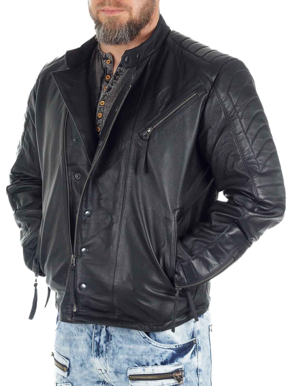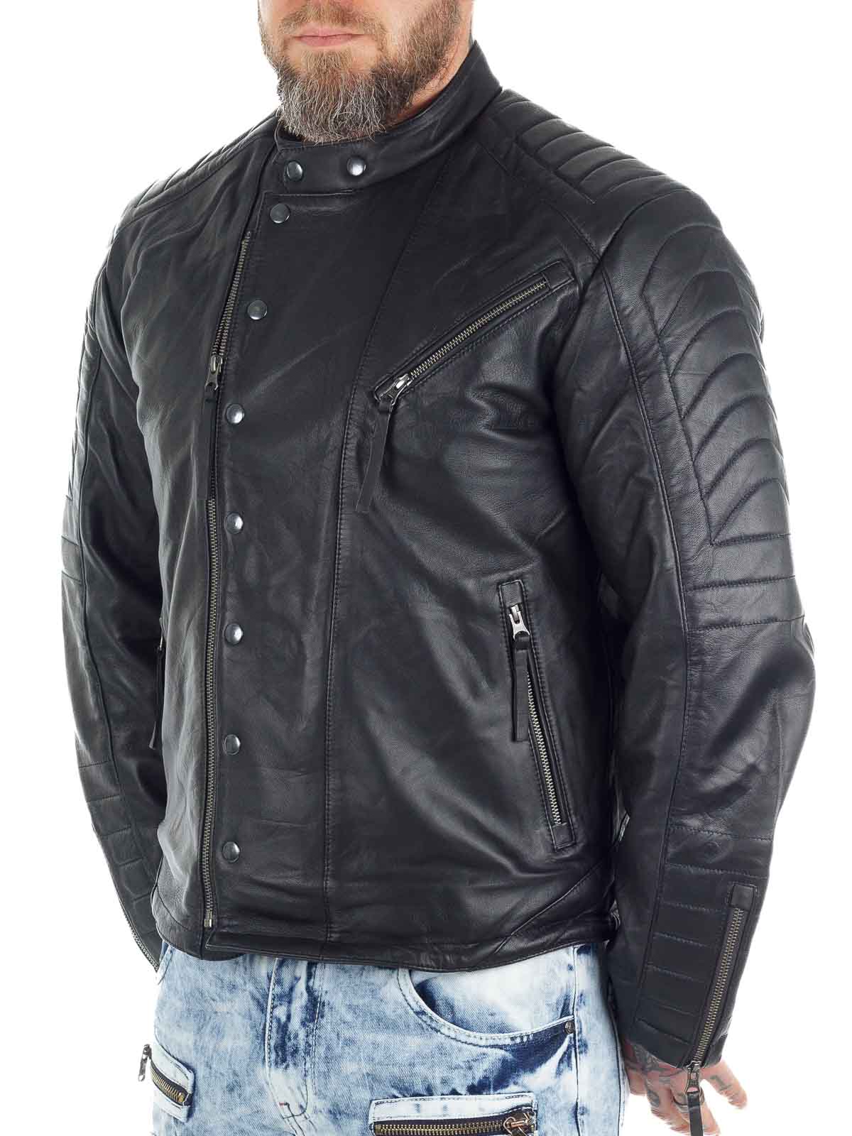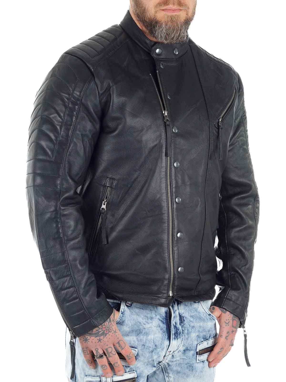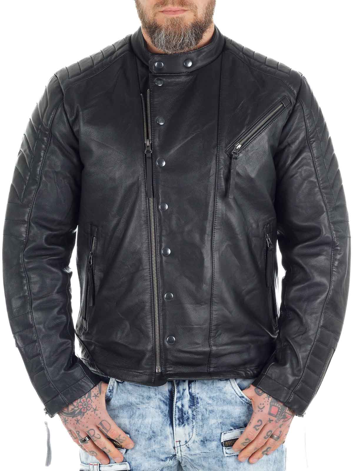 Näyttävä nahkatakki pehmeästä ja joustavasta lampaannahasta, jossa korostetut yksityiskohdat luovat voimakkaan ilmeen. Mallissa on edessä vetoketju- ja nappikiinnitys sekä topatut osiot olkapäissä, hihoissa ja selässä, jotka vahvistavat biker-henkistä ilmettä. Kolme käytännöllistä ulkotaskua ja kaksi sisätaskua tekevät takista sekä tyylikkään että toimivan. Eksklusiivinen nahkatakki asenteella – täydellinen sinulle, joka haluat yhdistää mukavuuden ja luonteen!