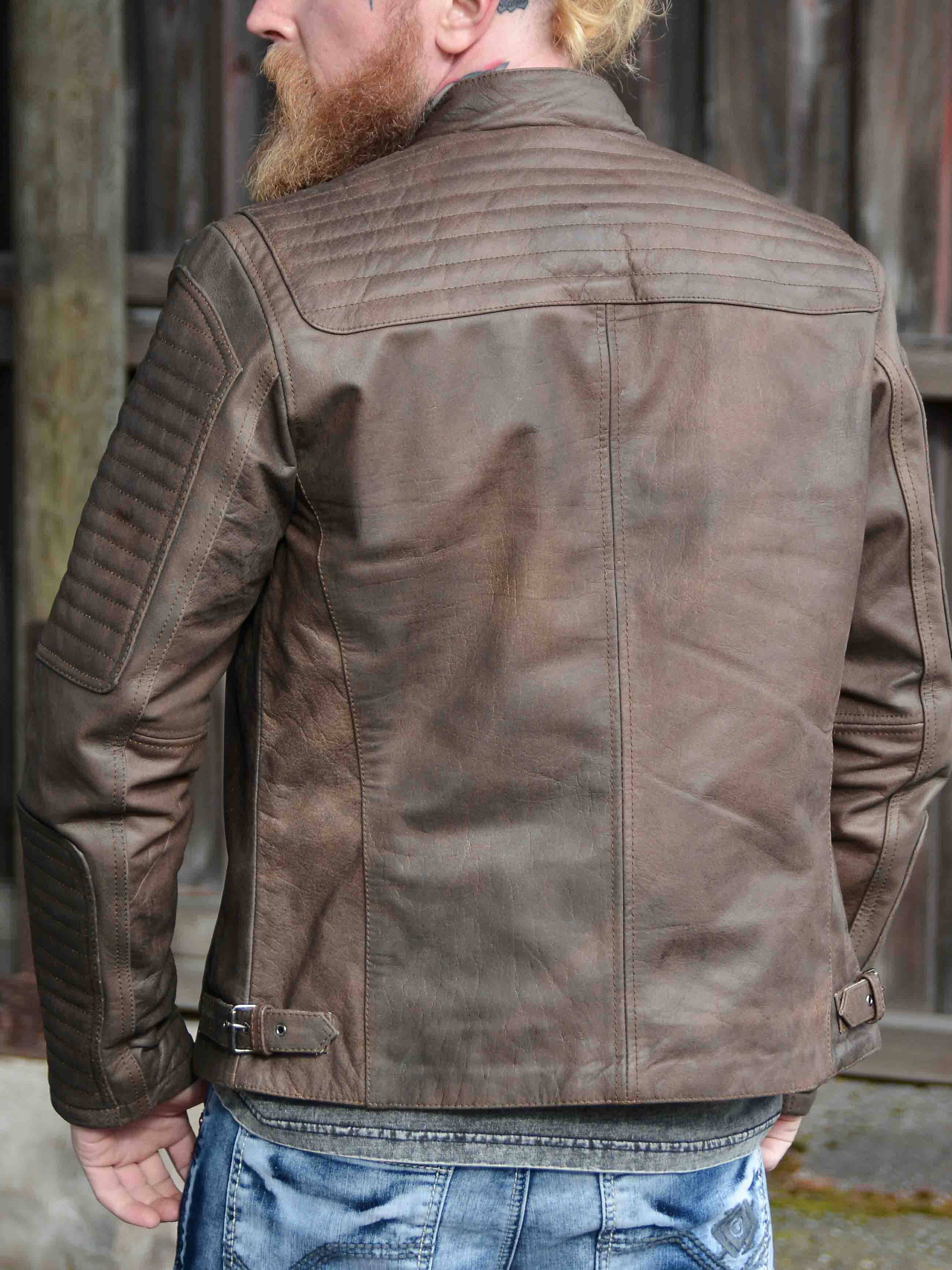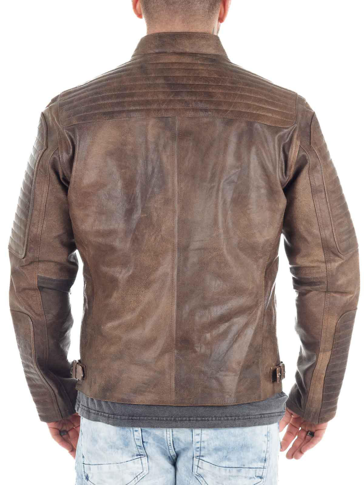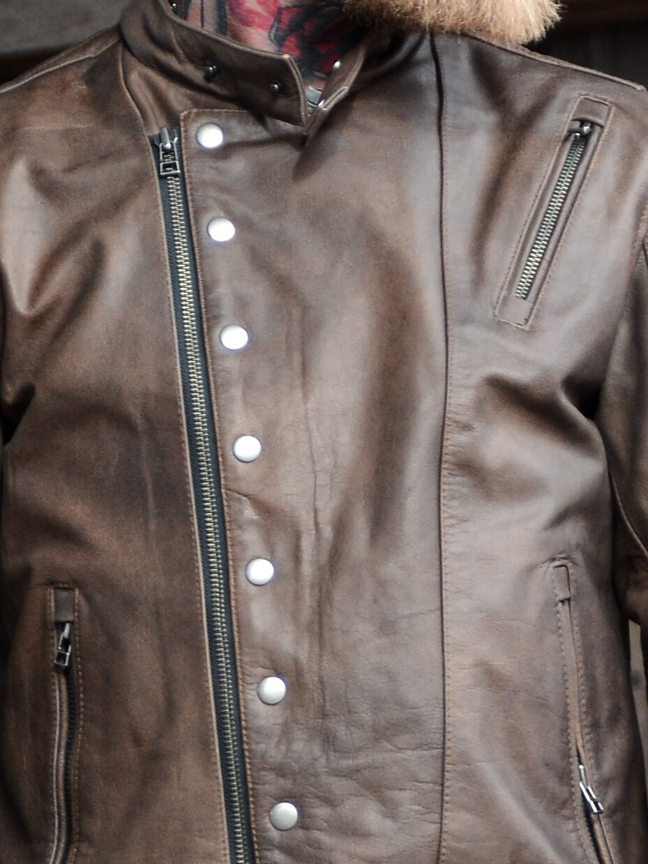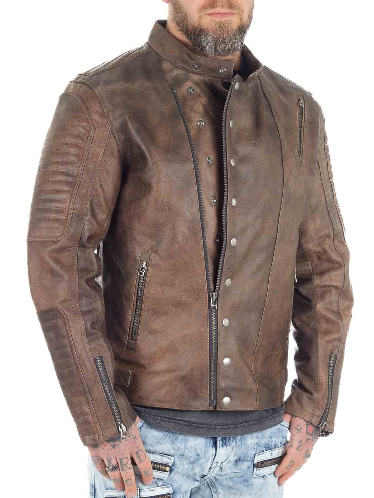 Tämä näyttävä takki on valmistettu aidosta puhvelinnahasta ja siinä on vintage-henkinen ilme. Vetoketju ja koristeellinen nappikiinnitys korostavat takin rouheaa luonnetta. Kolme ulkotaskua ja kaksi sisätaskua tarjoavat käytännöllistä säilytystilaa tärkeimmille tavaroillesi. Voimakas nahkatakki sinulle, joka haluat pukeutua maskuliinisella tyylillä!