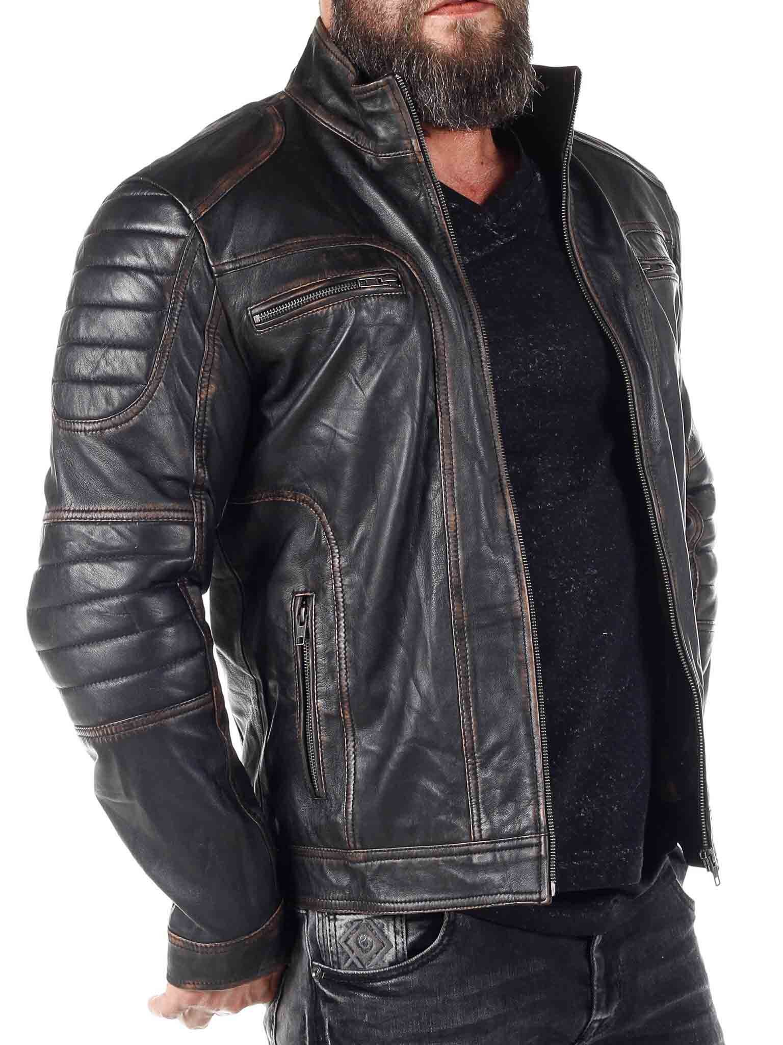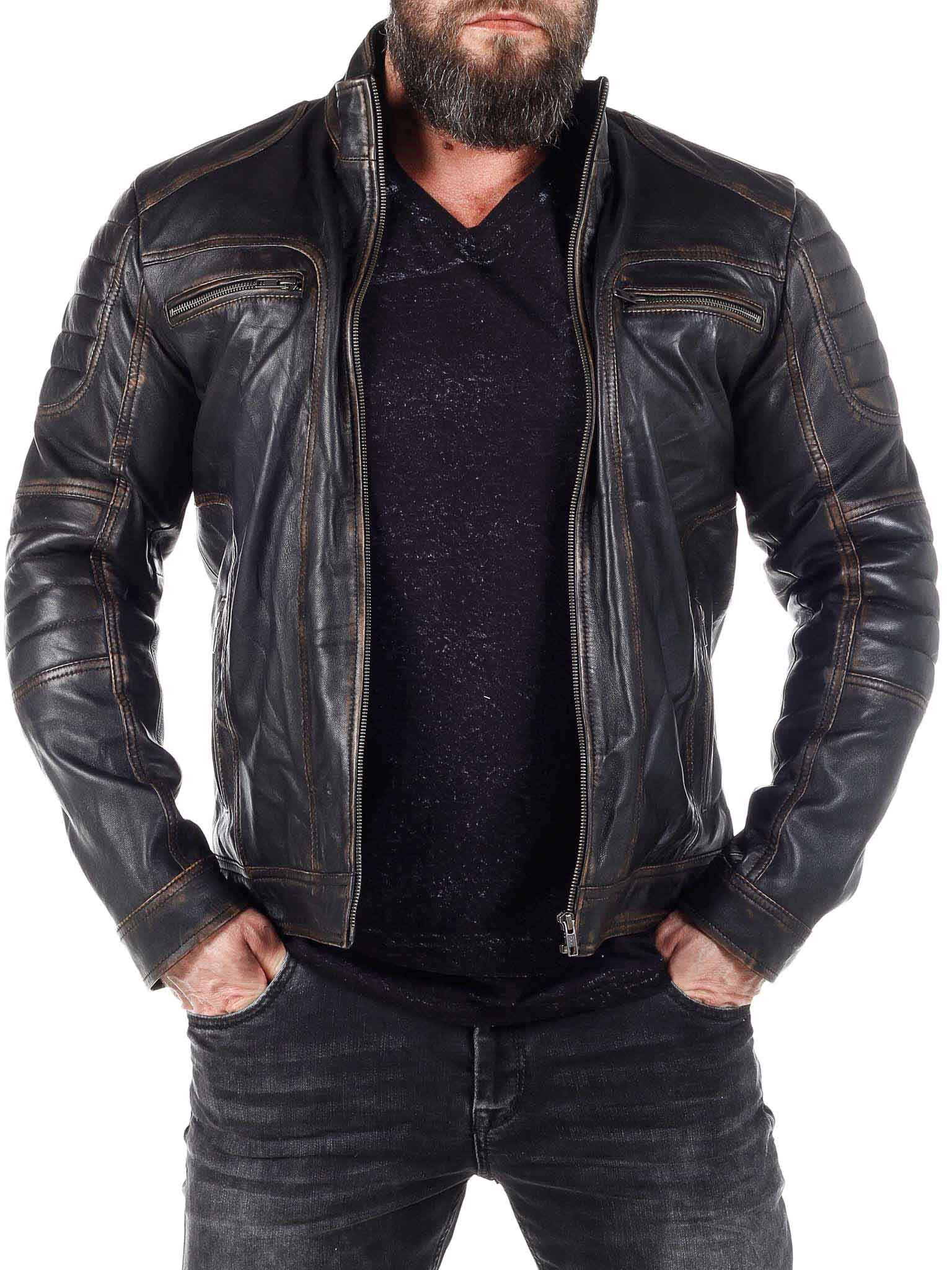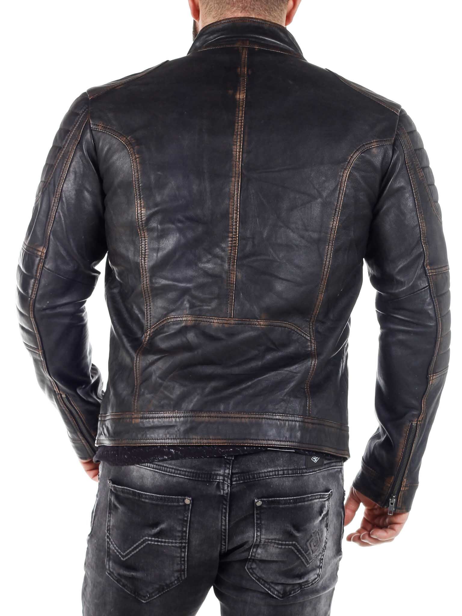 Tyylikäs nahkatakki vaaleammilla osioilla, jotka antavat sille näyttävän vintagelookin. Hihansuut säädettävissä vetoketjuilla, topattuja osioita. Neljä suljettavaa etutaskua ja kaksi sisätaskua. Takki sulkeutuu vetoketjulla.