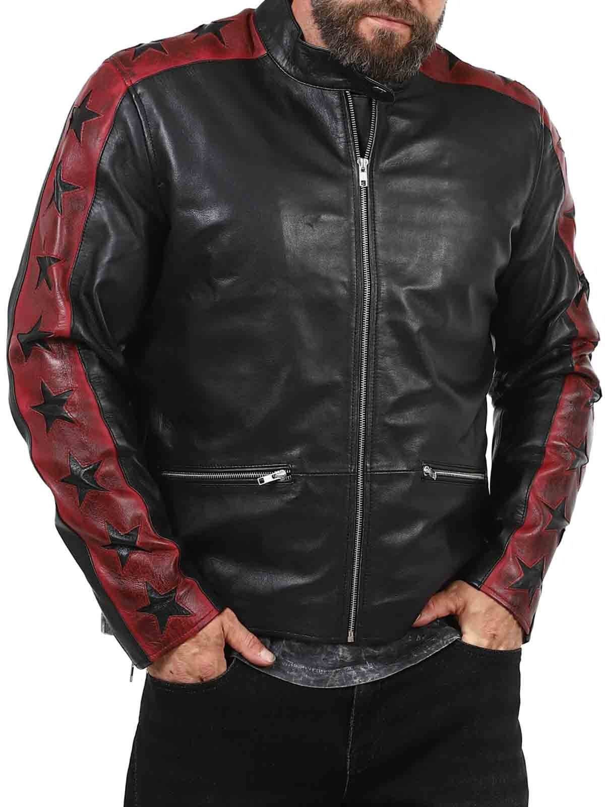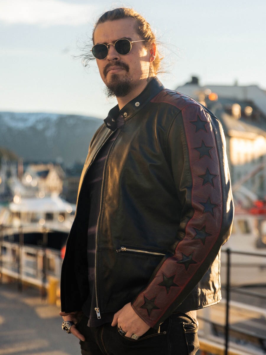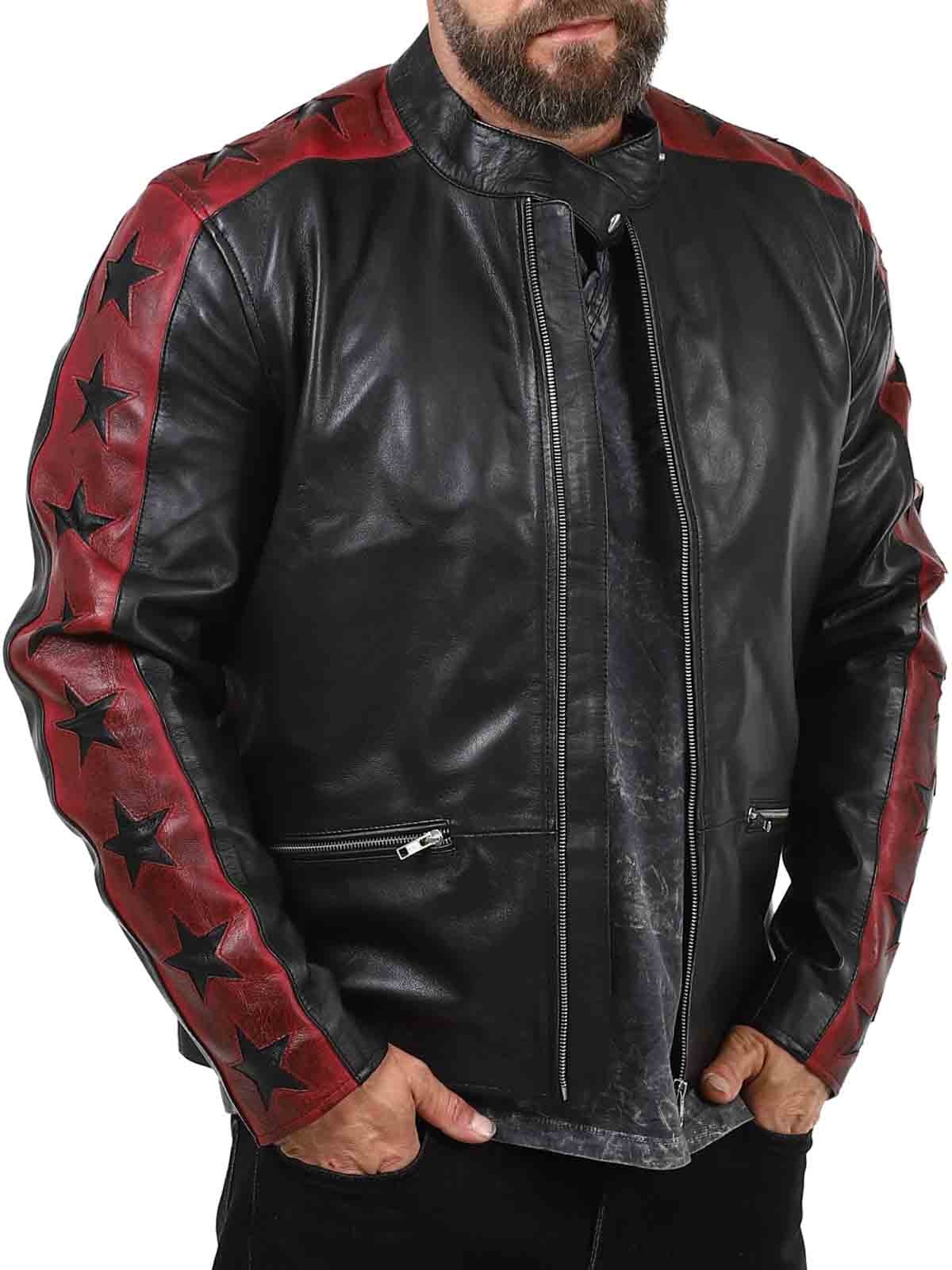 Aidosta, taipuisasta lampaannahasta valmistettu takki, jonka tyylissä on ripaus kapinallisuutta. Tummapunaisia nahkahihoja vasten kontrastia tuovat mustat tähdet, jotka antavat takille huomiota herättävän ilmeen. Takissa on vetoketjukiinnitys taskuissa ja hihansuissa sekä vahvistettu selkäosa. Tyylikäs pystykaulus ja vartaloa myötäilevä malli tekevät tästä takista täydellisen valinnan niille, jotka haluavat erottua joukosta tyylikkäästi!