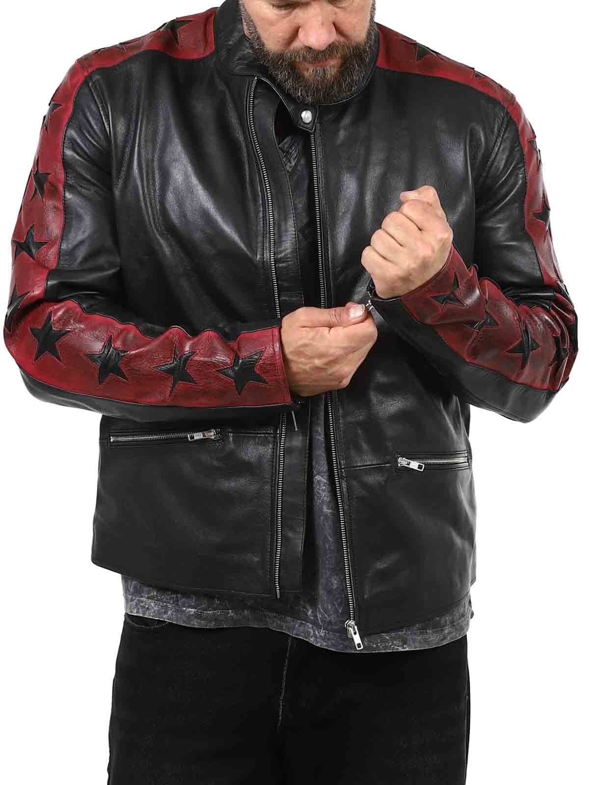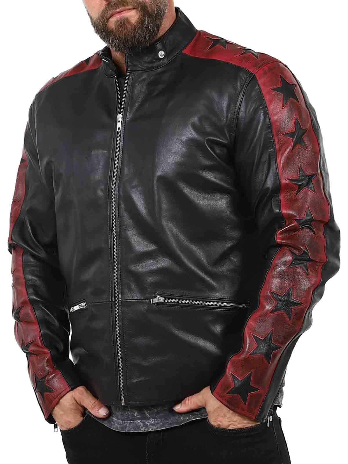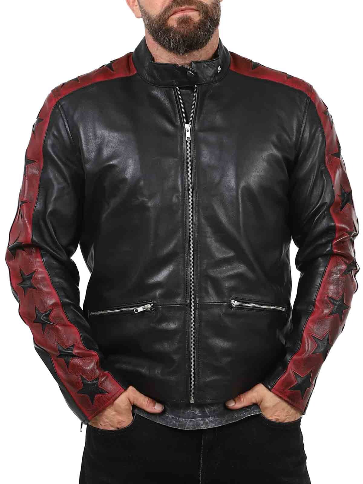 Aidosta, taipuisasta lampaannahasta valmistettu takki, jonka tyylissä on ripaus kapinallisuutta. Tummapunaisia nahkahihoja vasten kontrastia tuovat mustat tähdet, jotka antavat takille huomiota herättävän ilmeen. Takissa on vetoketjukiinnitys taskuissa ja hihansuissa sekä vahvistettu selkäosa. Tyylikäs pystykaulus ja vartaloa myötäilevä malli tekevät tästä takista täydellisen valinnan niille, jotka haluavat erottua joukosta tyylikkäästi!