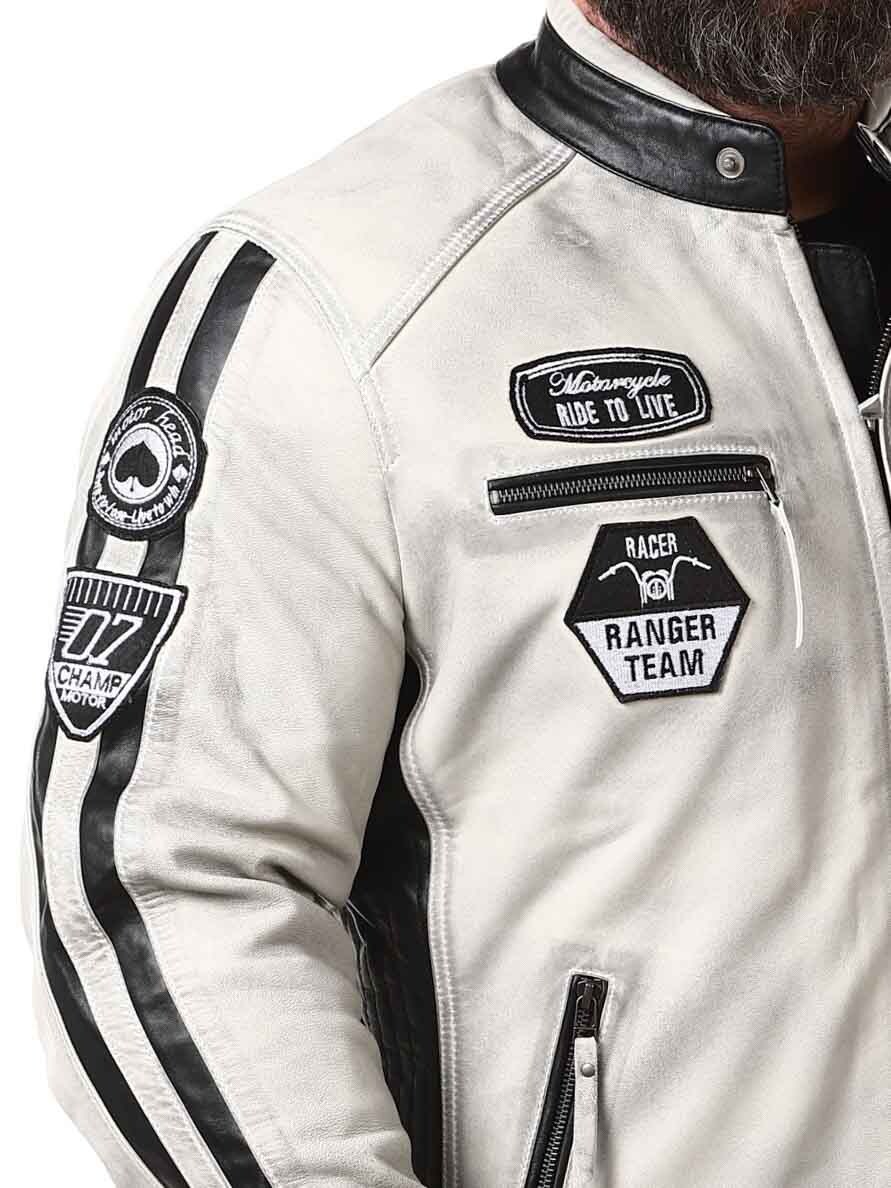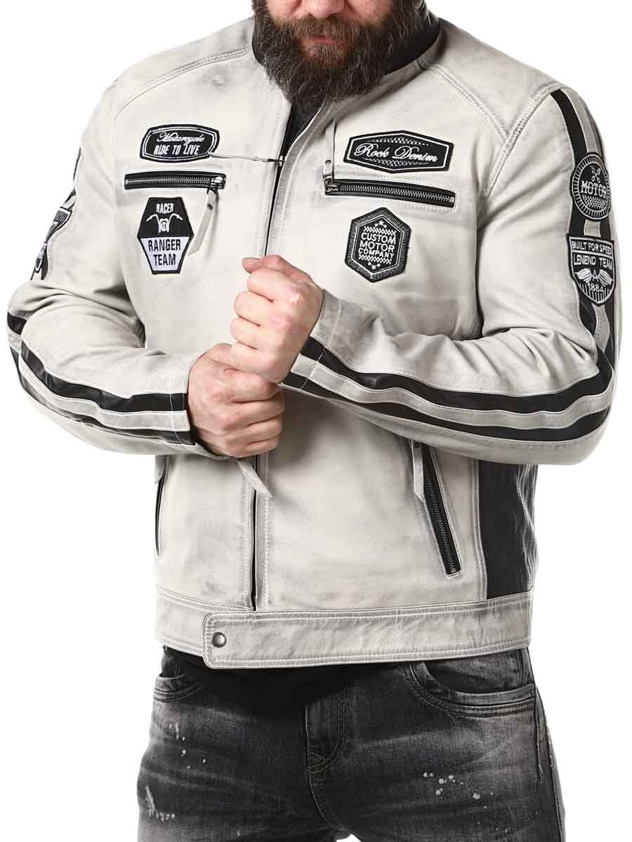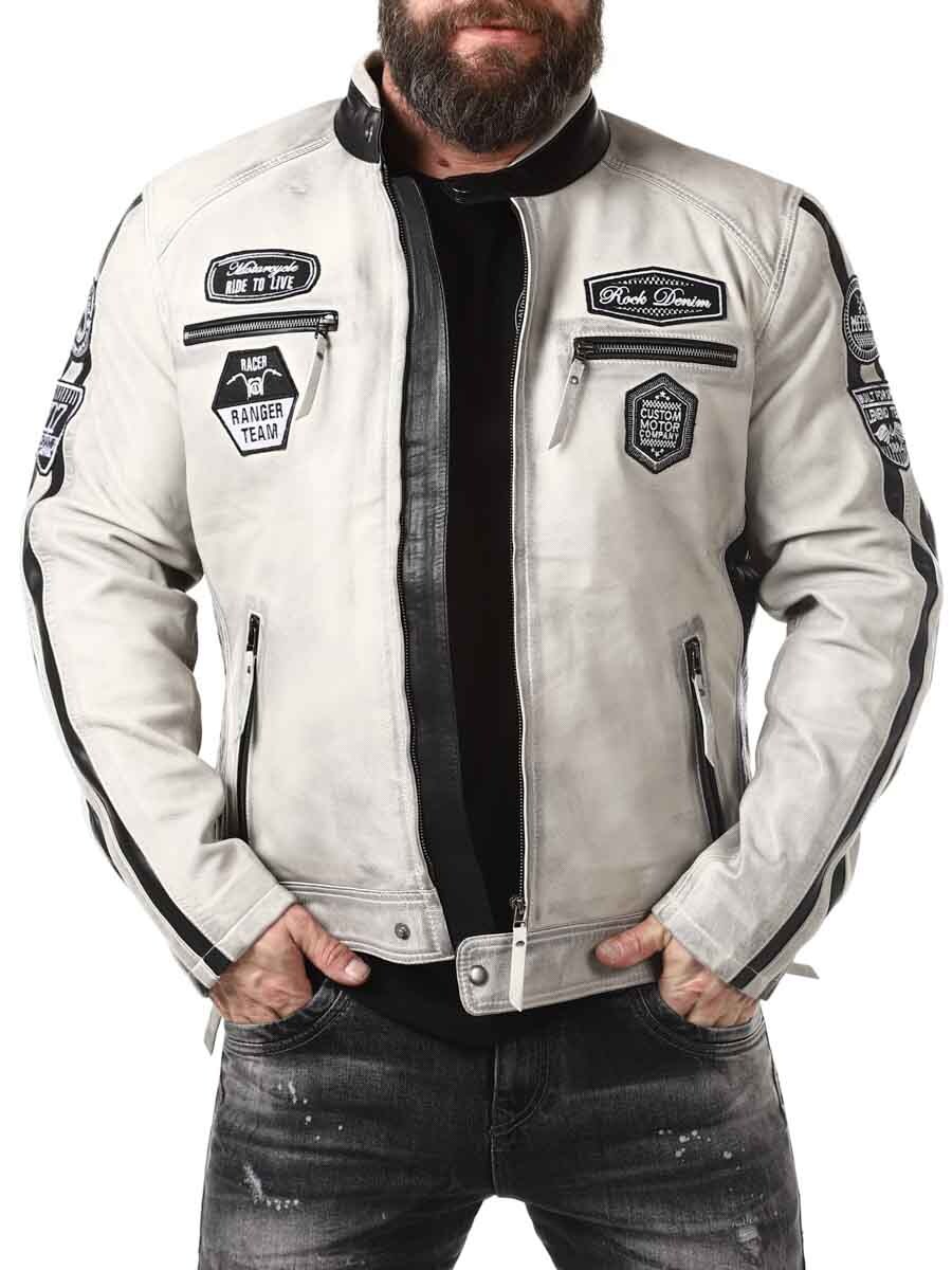 Valkoinenmusta nahkatakki merkiltä RockDenim