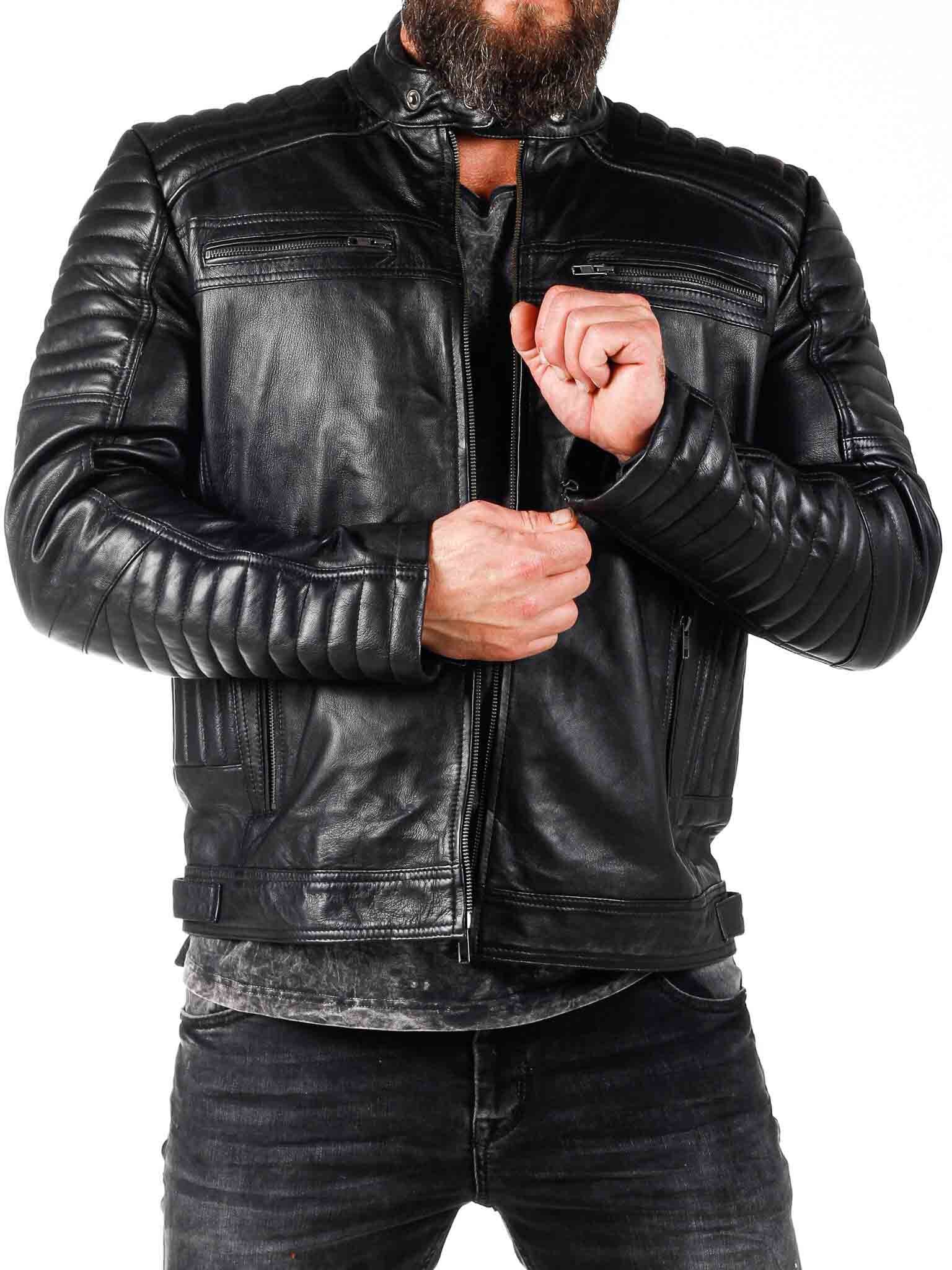Mukavantuntuinen aito nahkatakki, joka on säädettävissä vyötäröltä ja hihansuista. Neljä suljettavaa etutaskua ja kaksi sisätaskua. Takki sulkeutuu vetoketjulla ja siinä on topattuja osioita. Tämä takki on saatavilla ainoastaan RockDenimiltä!