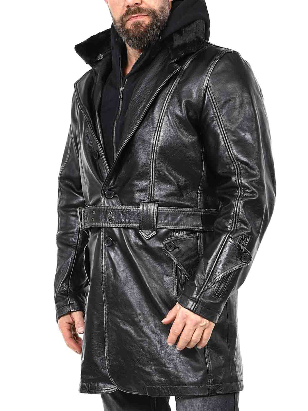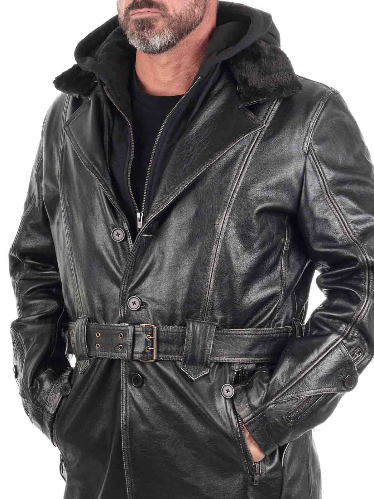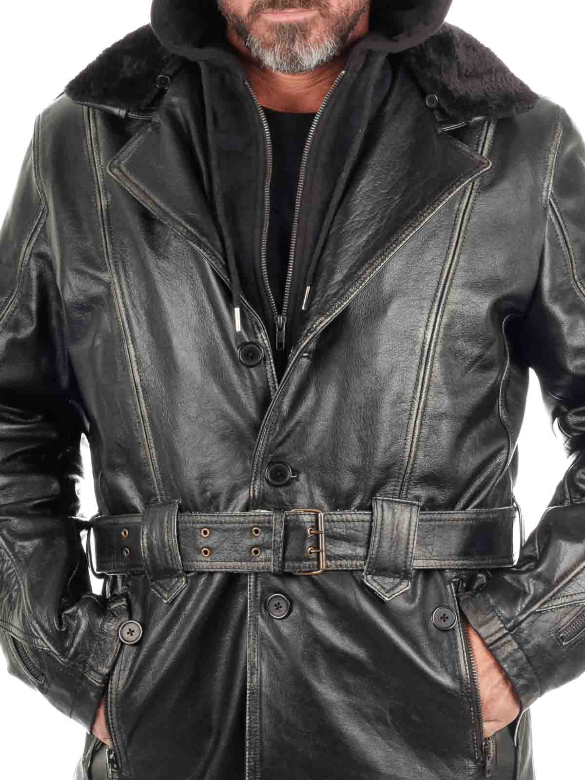 Voimakas ja tyylikäs takki aidosta biisoninnahasta – miehelle, joka arvostaa sekä tyyliä että laatua. Pitkä malli ja jämäkkä nahka luovat vahvan ja maskuliinisen siluetin, jossa on selkeä asenne. Etupuolella on irrotettava collegeosa hupulla, jonka ansiosta voit valita rouhean biker-tyylin tai rennomman arkityylin. Sisäpuolella on irrotettava teddyvuori, joka lämmittää kylminä päivinä ja voidaan poistaa sään lämmetessä. Useita vetoketjullisia ulkotaskuja ja käytännöllisiä sisätaskuja.