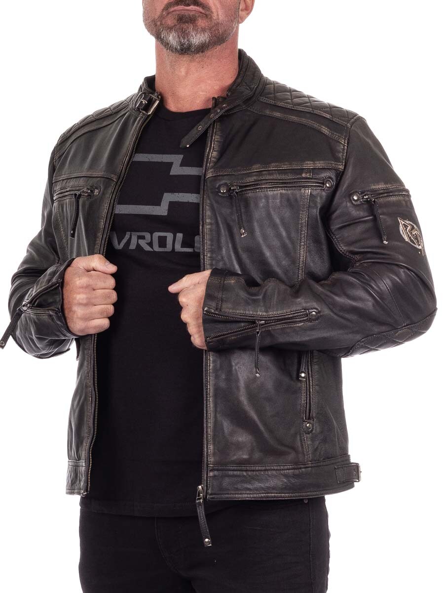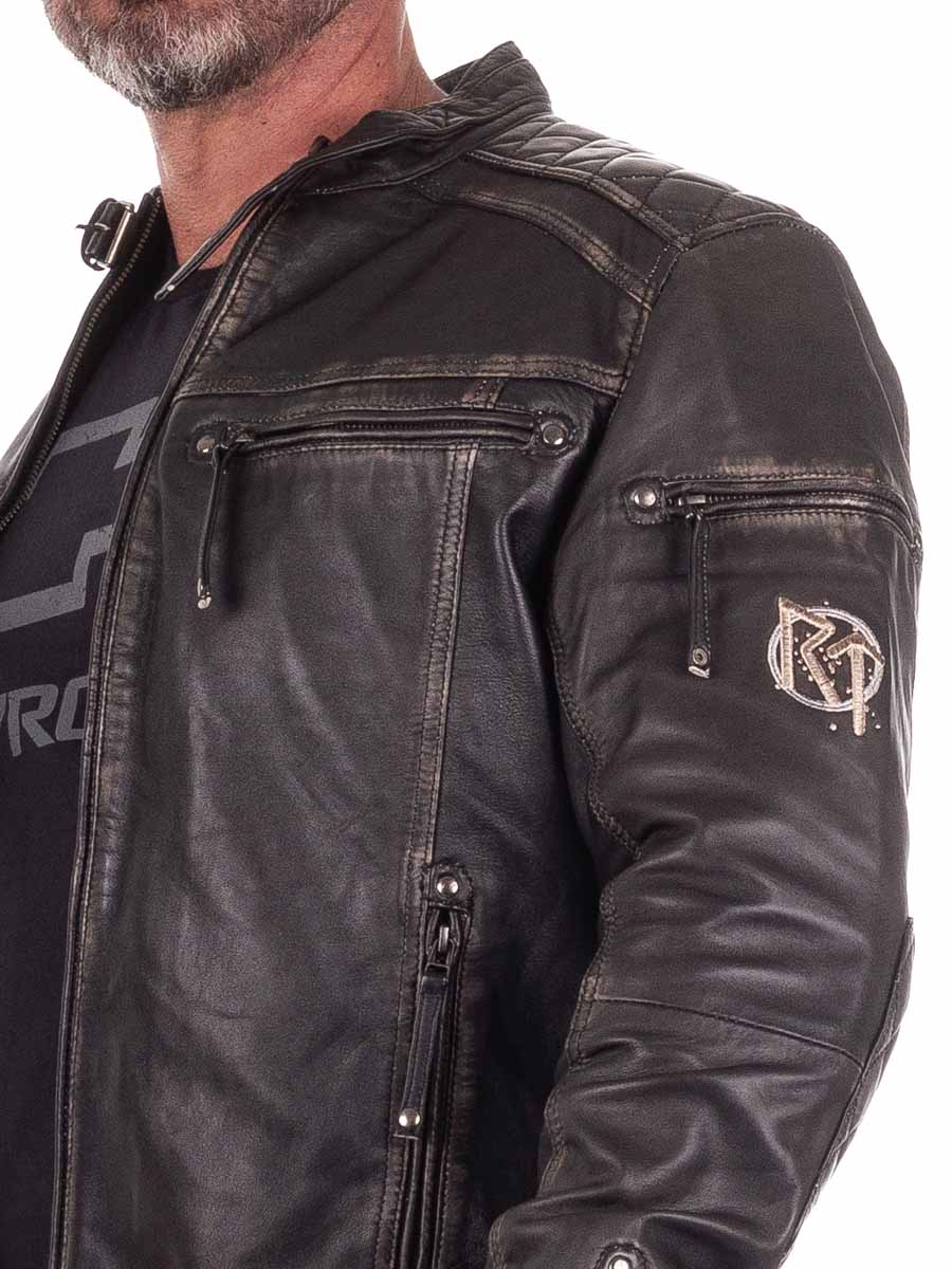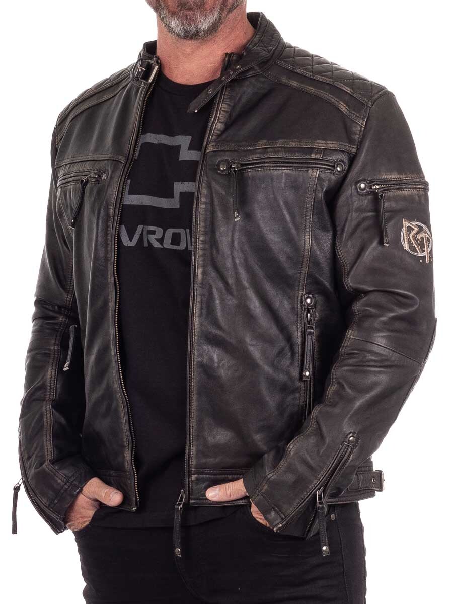Räyhäkkä takki aidosta nahasta, jossa on kulutettu vintage-tyyli ja kirjotut viikinkiaiheet, jotka antavat sille ainutlaatuisen luonteen. Suunniteltu pehmustetuilla osilla, säädettävillä hihansuilla ja helmalla optimaalisen istuvuuden takaamiseksi. Neljä suljettavaa etutaskua ja kaksi käytännöllistä sisätaskua. Tämä takki on valmistettu yksinoikeudella asiakkaillemme ja löydät sen vain RockDenim!