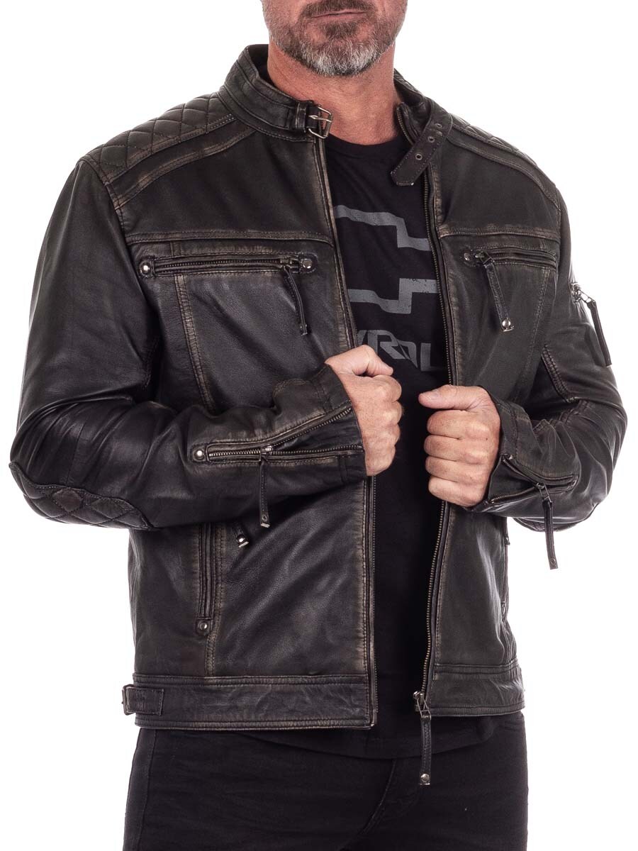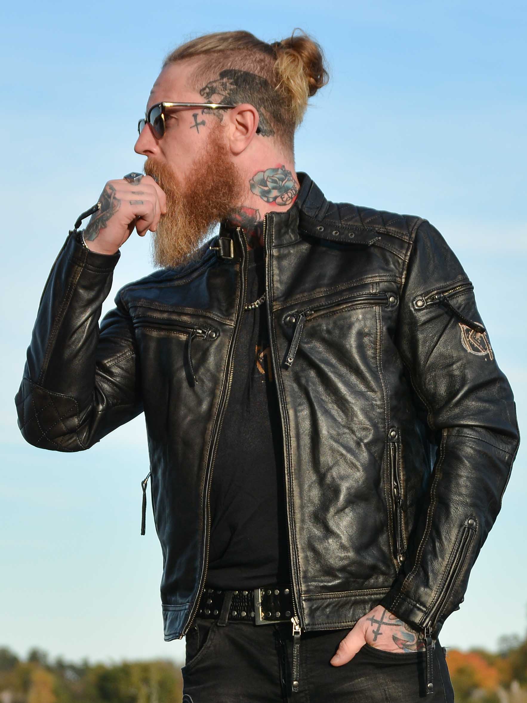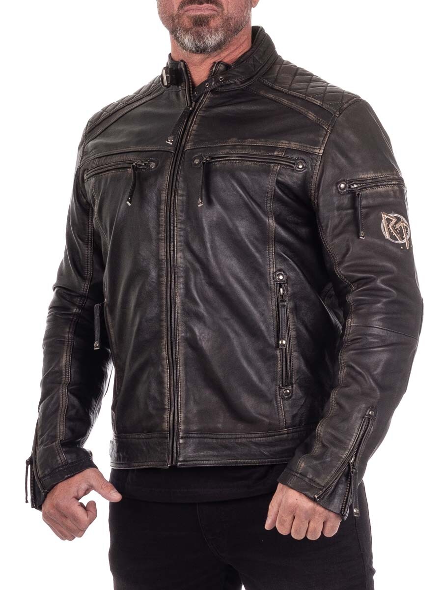 Räyhäkkä takki aidosta nahasta, jossa on kulutettu vintage-tyyli ja kirjotut viikinkiaiheet, jotka antavat sille ainutlaatuisen luonteen. Suunniteltu pehmustetuilla osilla, säädettävillä hihansuilla ja helmalla optimaalisen istuvuuden takaamiseksi. Neljä suljettavaa etutaskua ja kaksi käytännöllistä sisätaskua. Tämä takki on valmistettu yksinoikeudella asiakkaillemme ja löydät sen vain RockDenim!