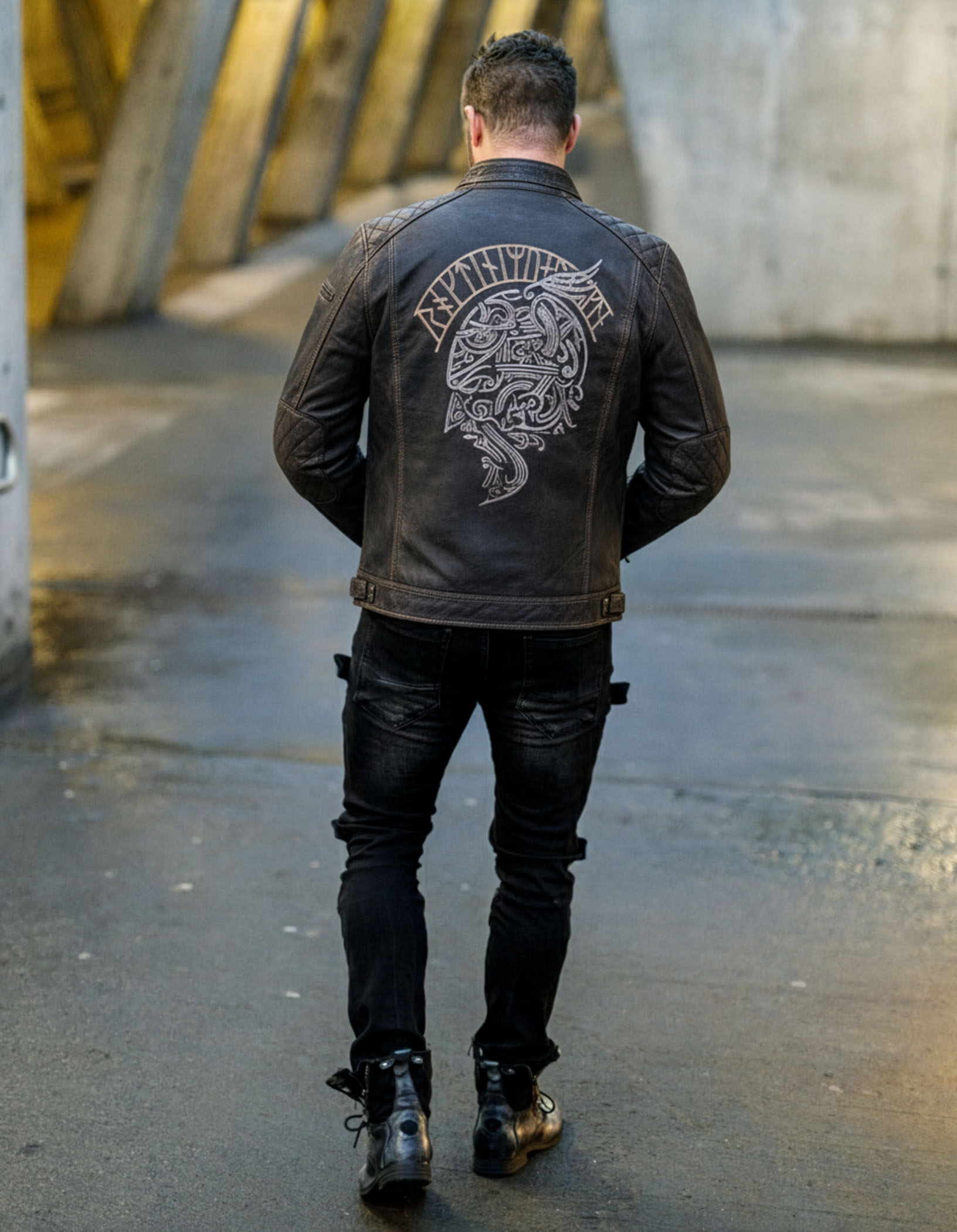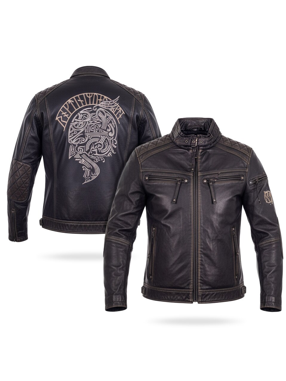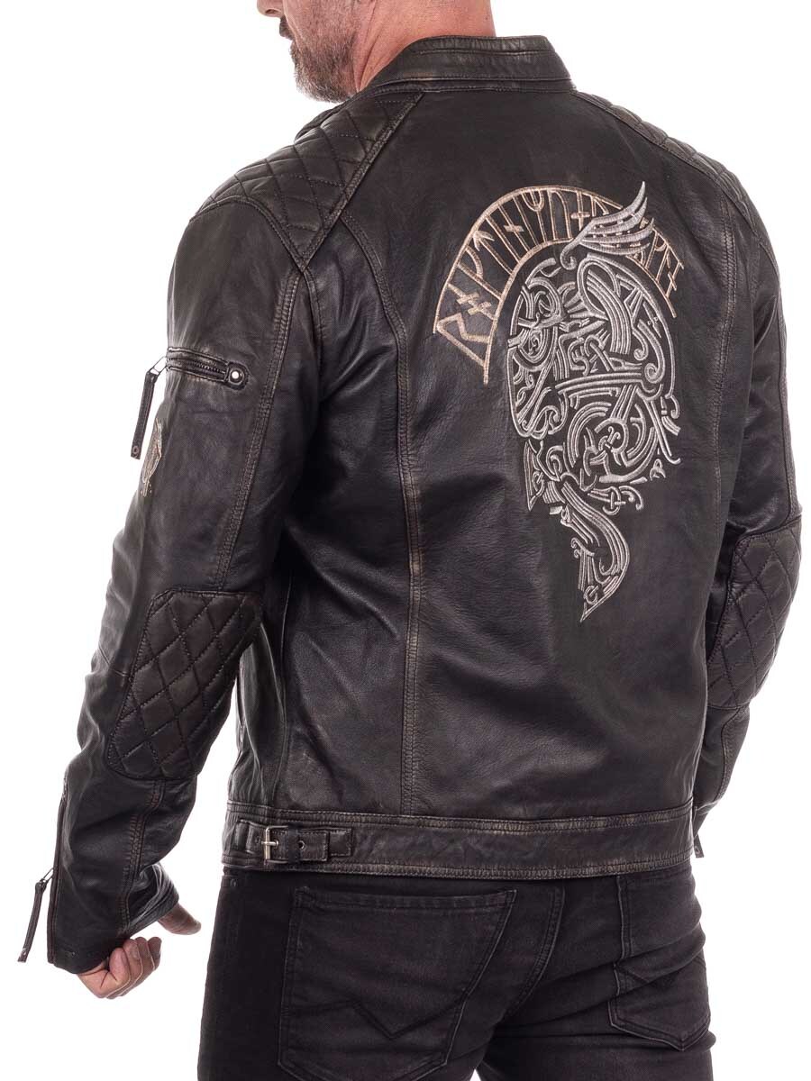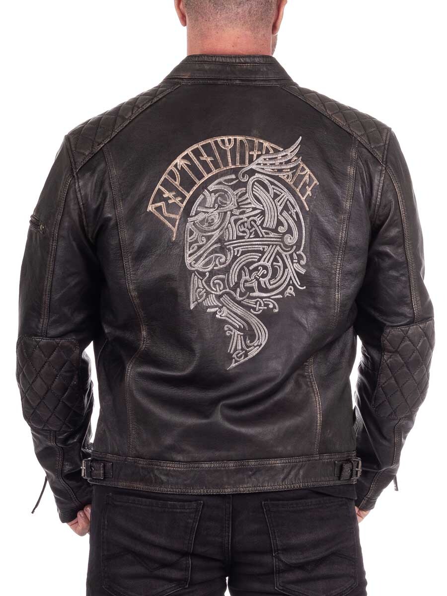 Nahkatakki viikinkiaiheisella kirjonnalla – RD Ancestors Viking Collection
