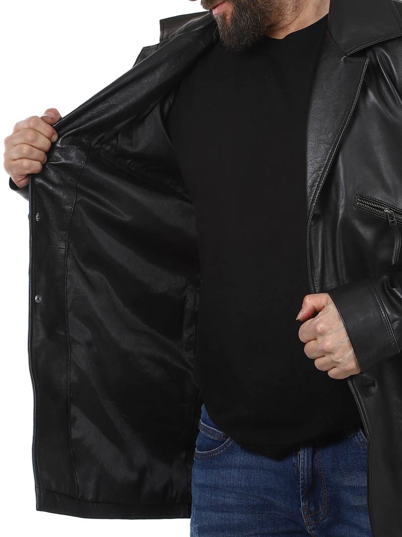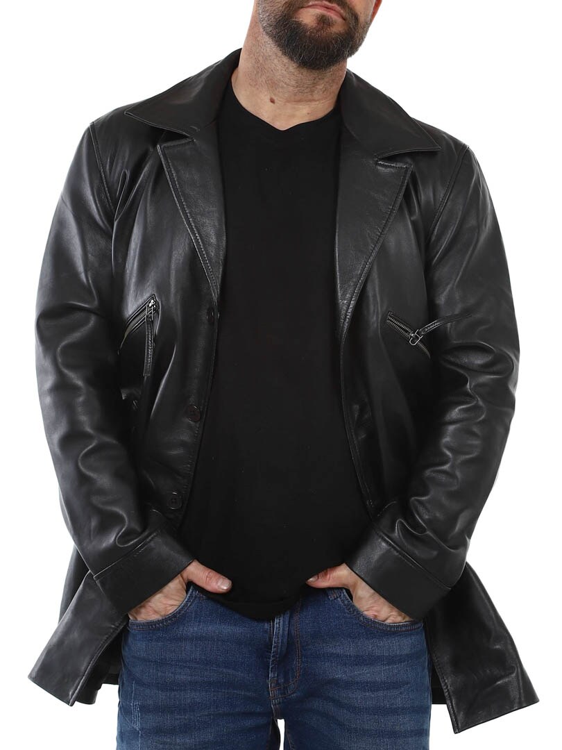 Musta takki, joka on valmistettu pehmeästä ja joustavasta nahasta. Takissa on kaulus, neljä etutaskua ja kaksi sisätaskua. Lisää vaatekaappiisi potkua tällä takilla, joka on samalla panostus sekä tyyliin että mukavuuteen. Valmistettu laadukkaasta nahasta ja saatavilla vain Rockdenimiltä!
