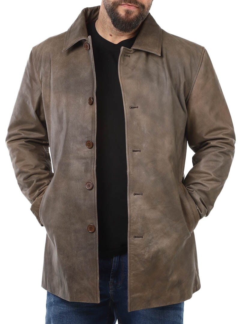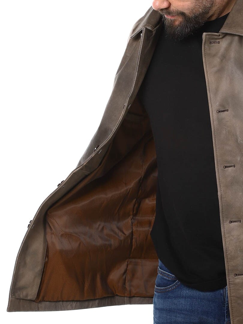 Tyylikäs ruskea takki, jossa on neljä etutaskua ja kaksi sisätaskua. Takissa on kaulus ja se suljetaan napeilla. Anna vaatekaapillesi tyylikäs päivitys tämän ruskean nahkatakin myötä, jonka löydät vain Rockdenimiltä!