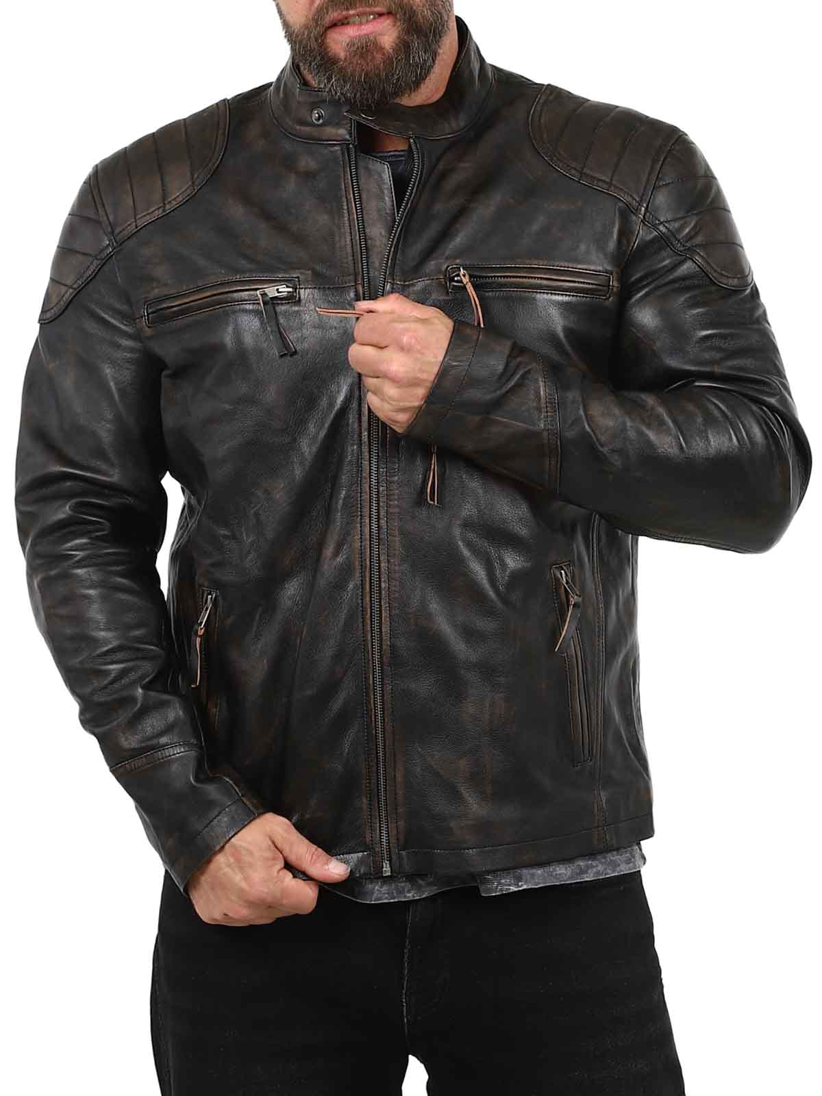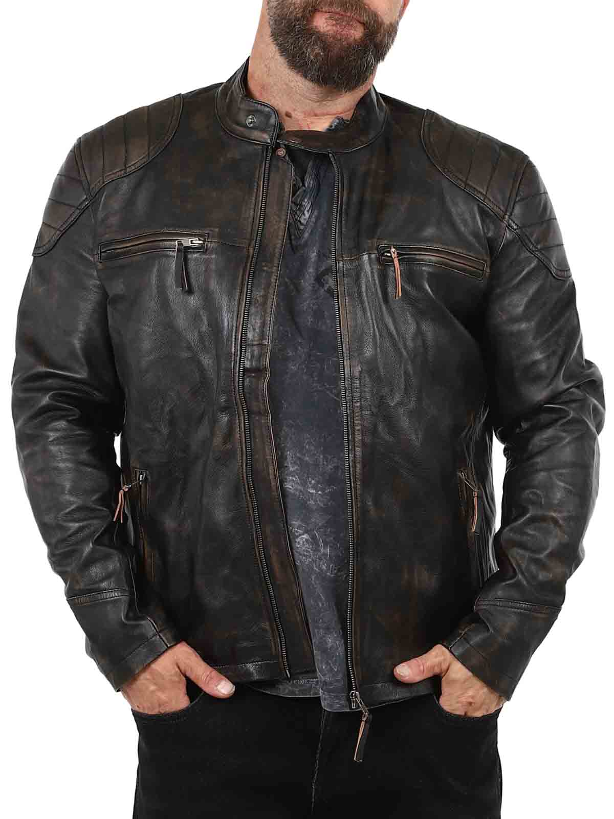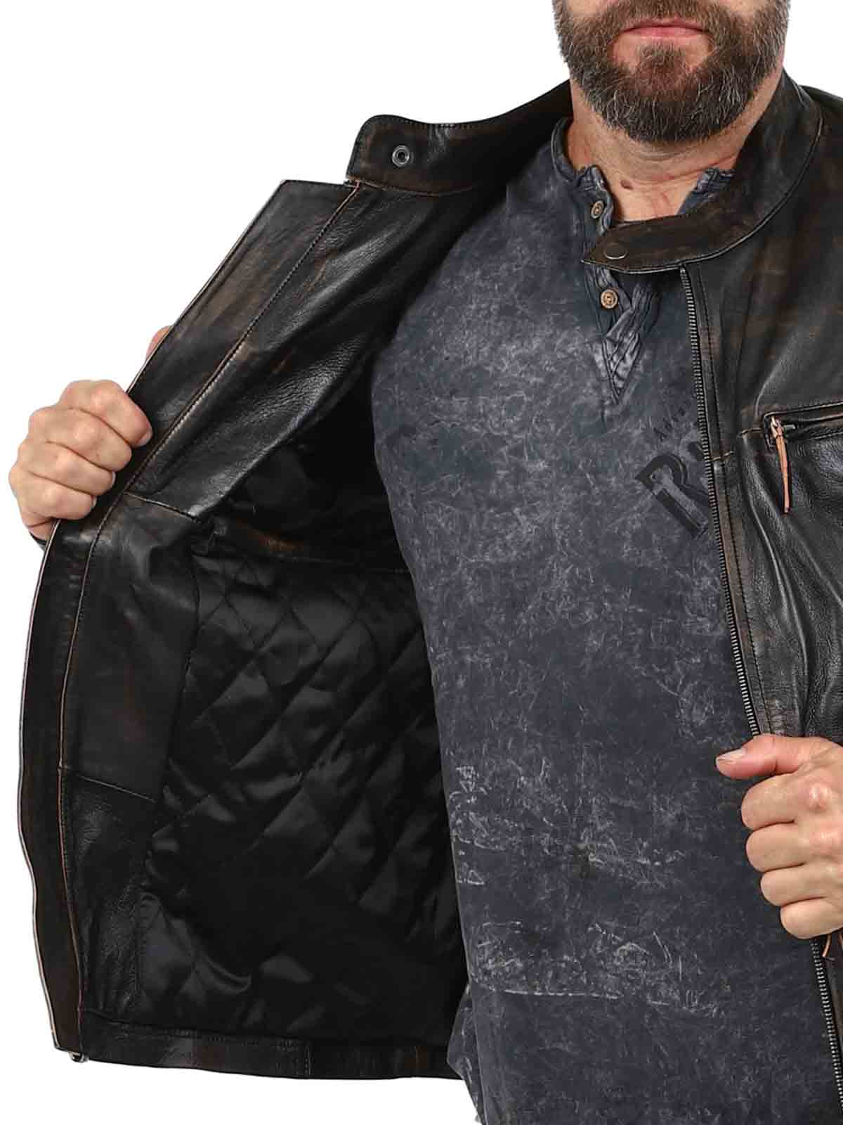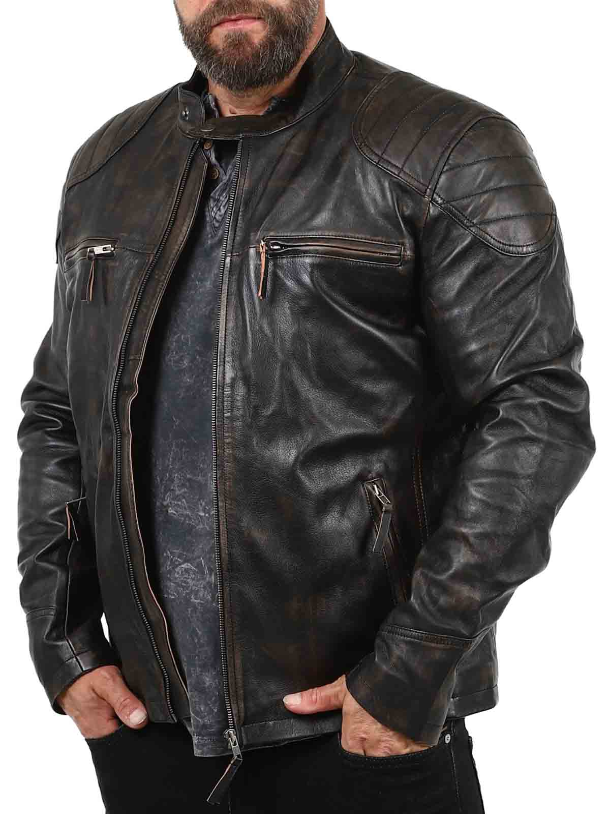 Laadukkaasta nahasta valmistettu takki, jonka sävy on tyylikäs vintage-ruskea. Takissa on säädettävät hihansuut, vahvistetut olkapäät ja neljä suljettavaa etutaskua sekä kaksi sisätaskua. Päivitä vaatekaappisi tällä tyylikkäällä nahkatakilla, joka on saatavilla ainoastaan Rockdenimiltä!