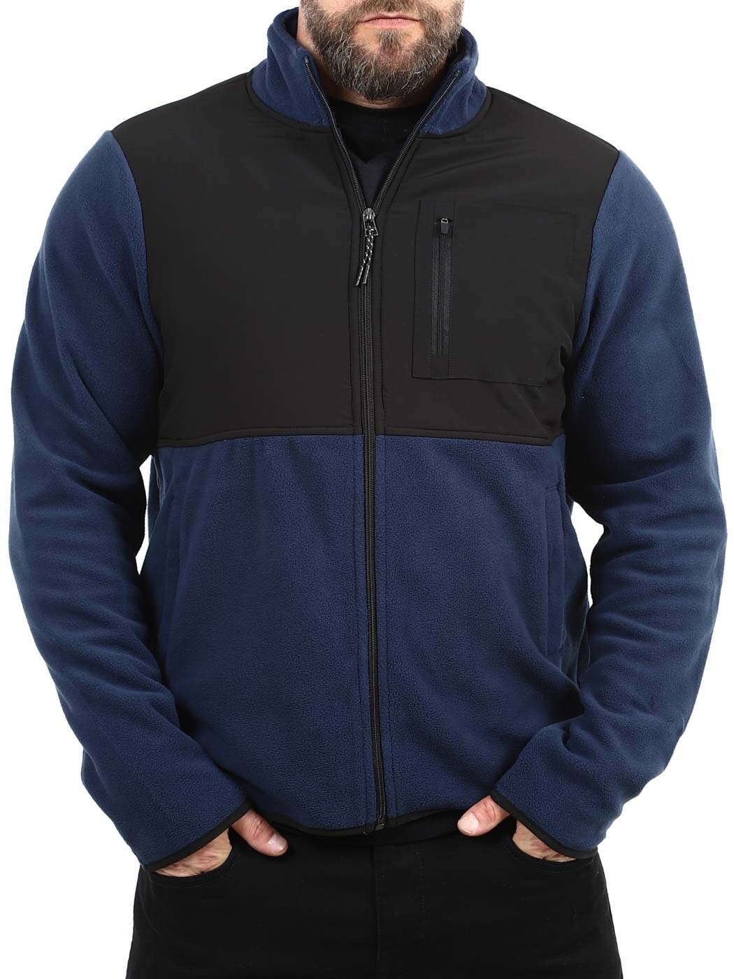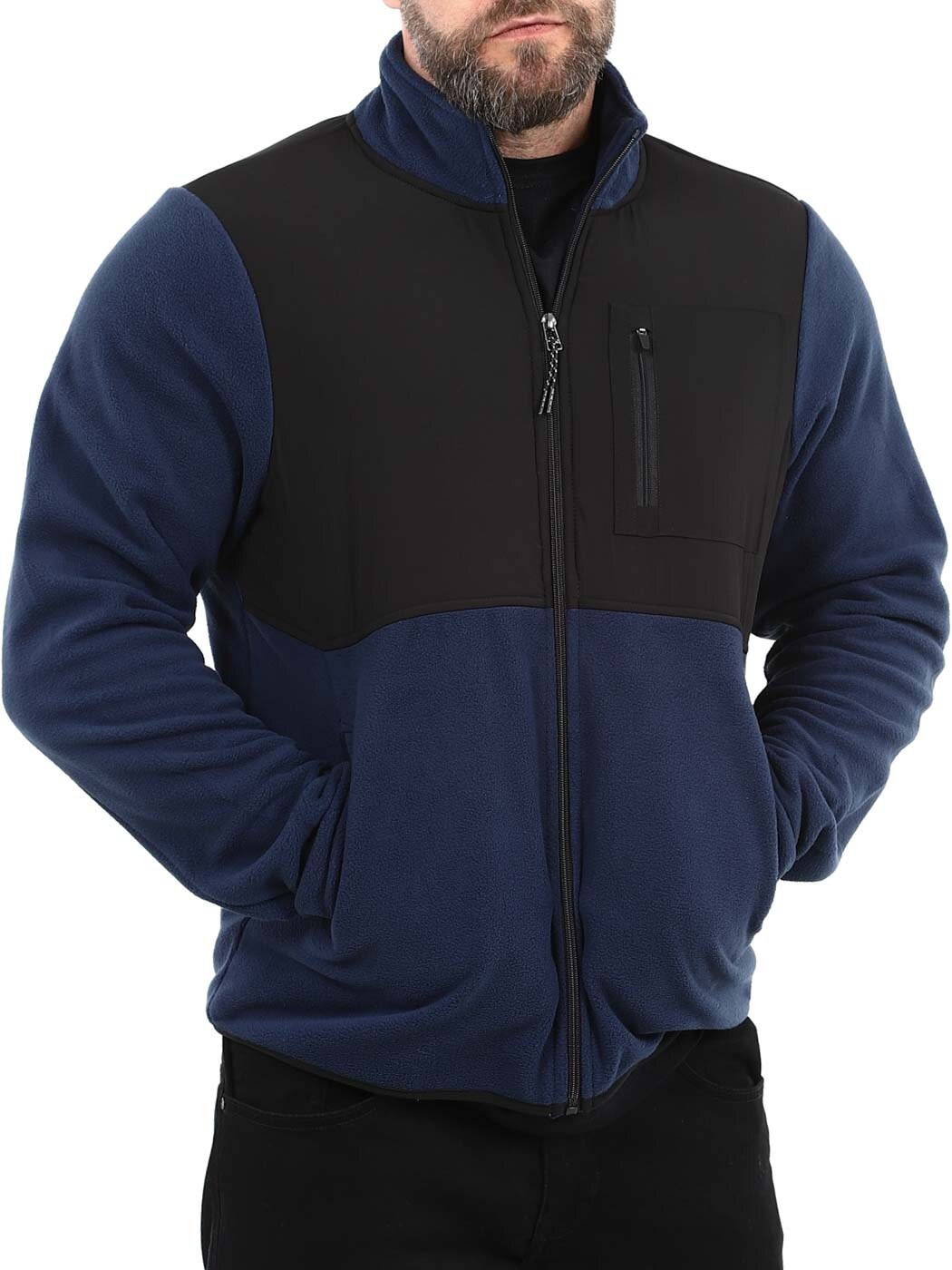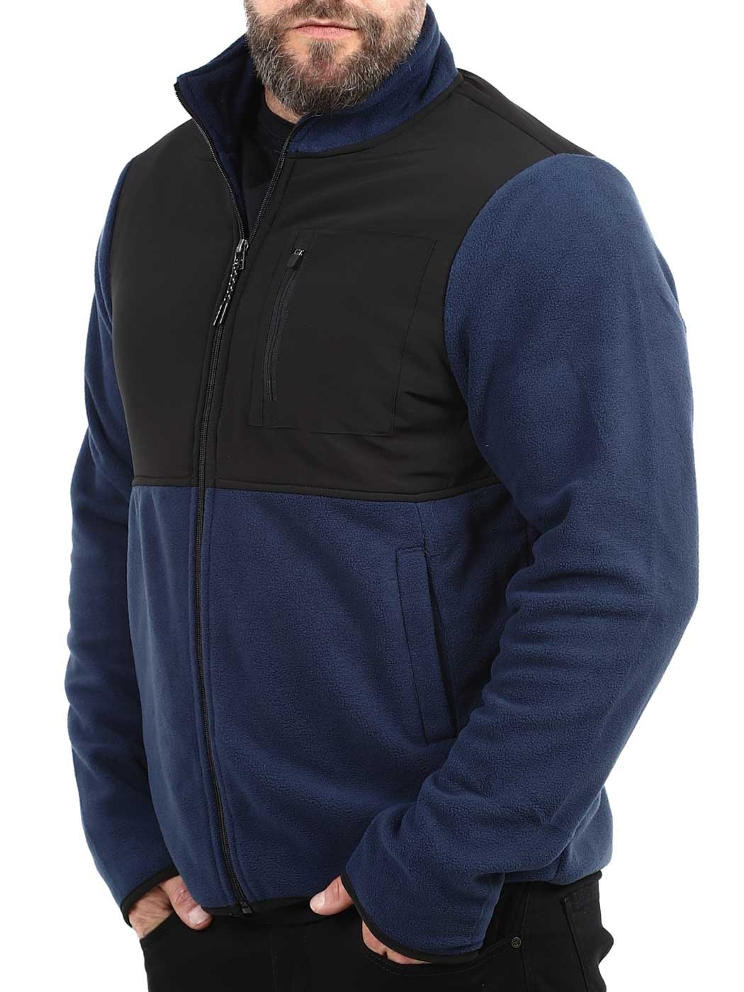Käytännöllinen ja tyylikäs fleecetakki, jossa yhdistyvät toiminnallisuus ja mukavuus. Takissa on kaulus, kaksi avotaskua vatsassa ja suljettava rintatasku.