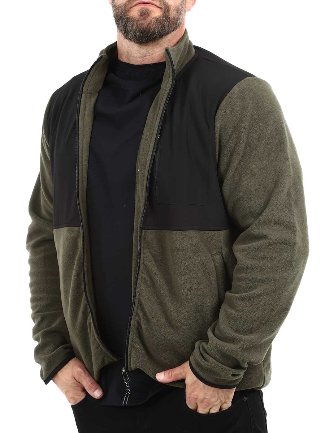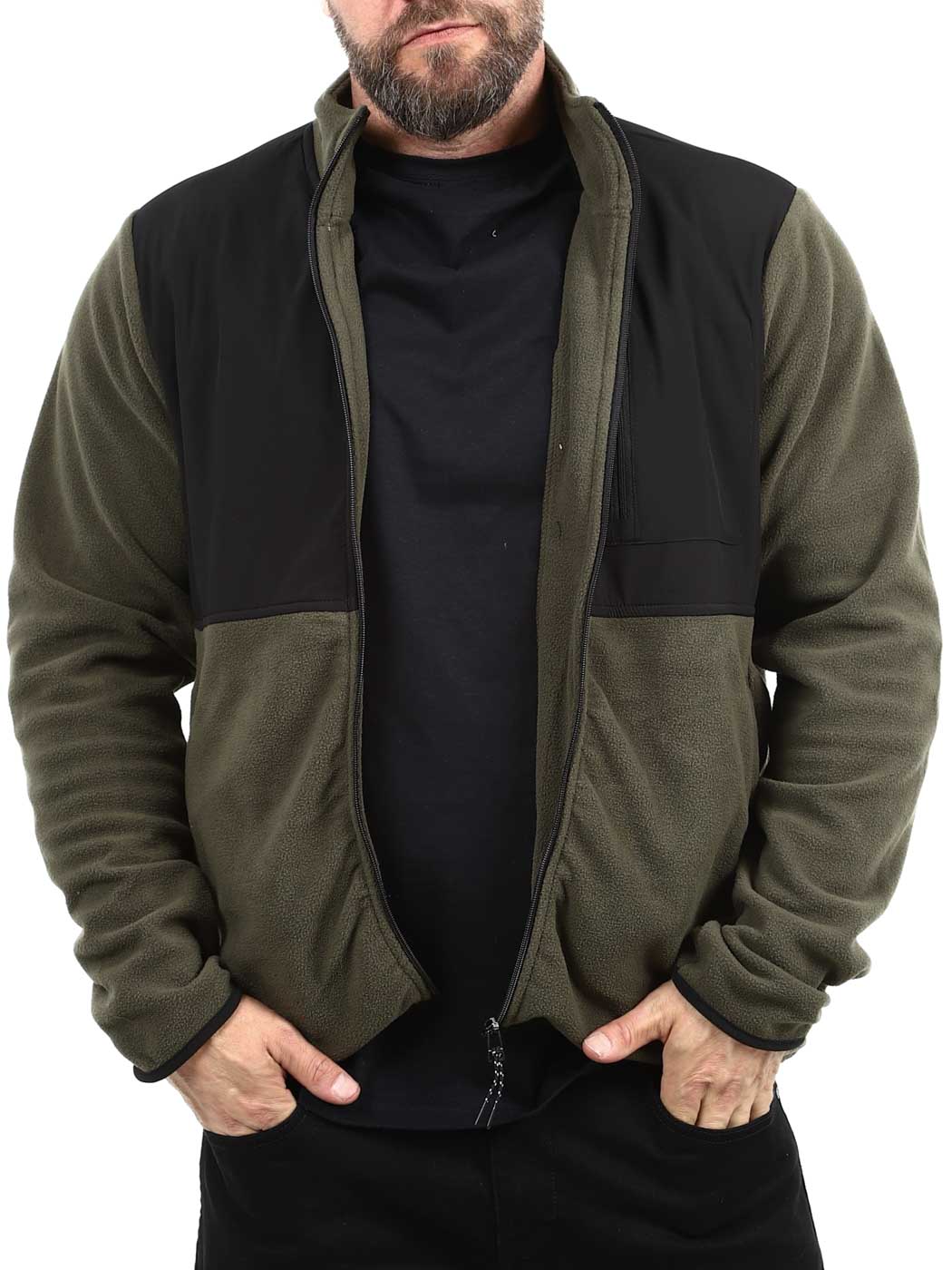 Käytännöllinen ja tyylikäs fleecetakki, jossa yhdistyvät toiminnallisuus ja mukavuus. Takissa on kaulus, kaksi avotaskua vatsassa ja suljettava rintatasku.